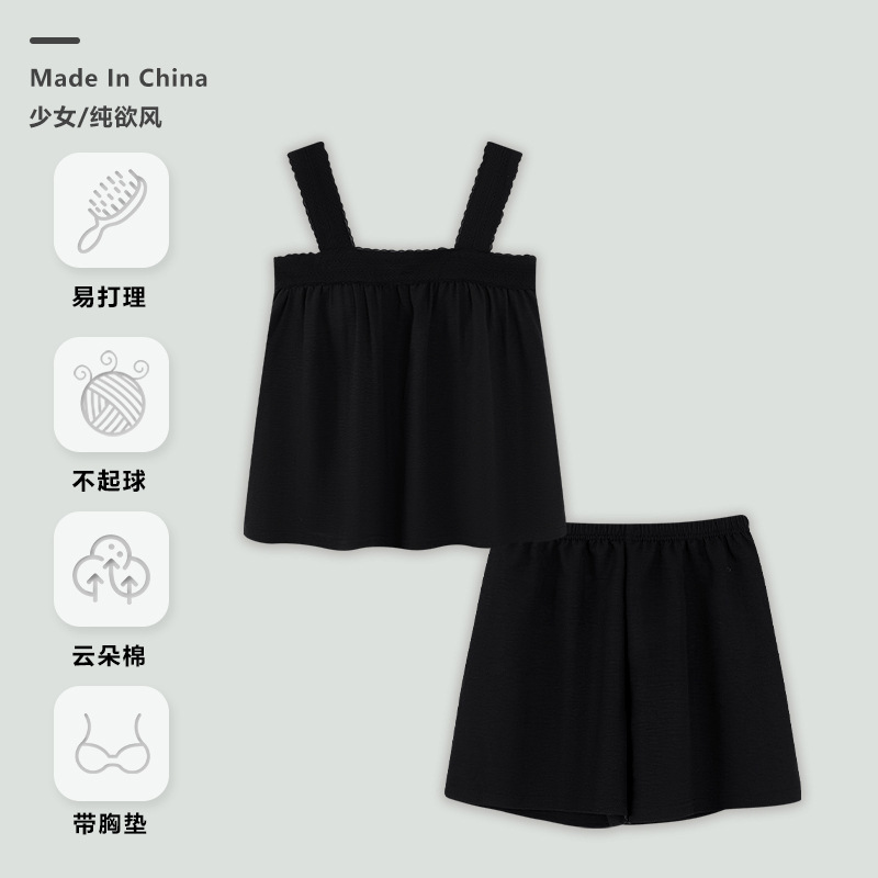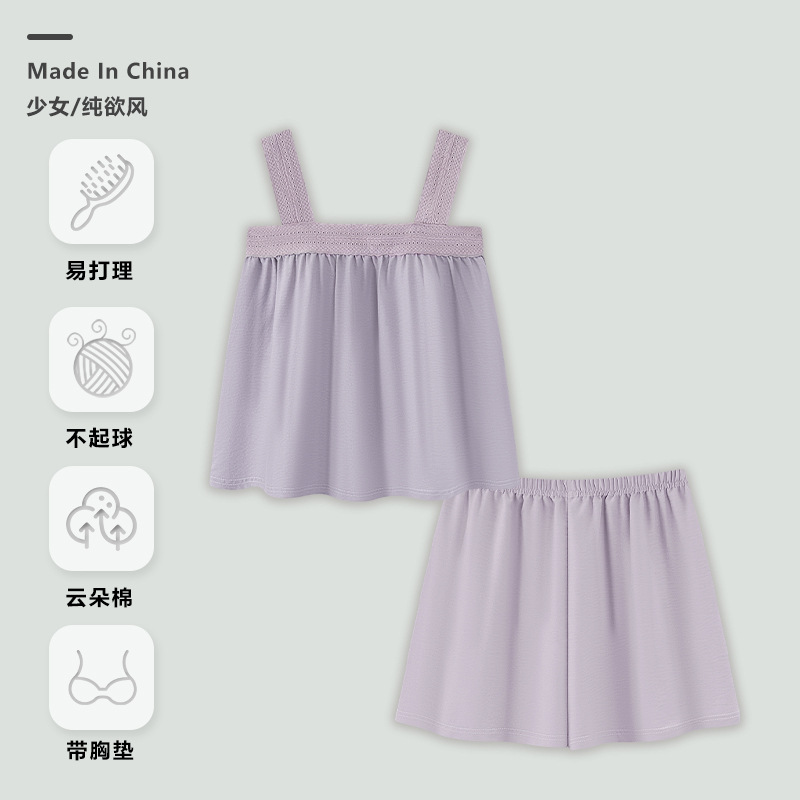 여름 얇은 구름 코튼 홈 옷 플러스 사이즈 반바지 세트 가슴 패드 슬링 여성 잠옷