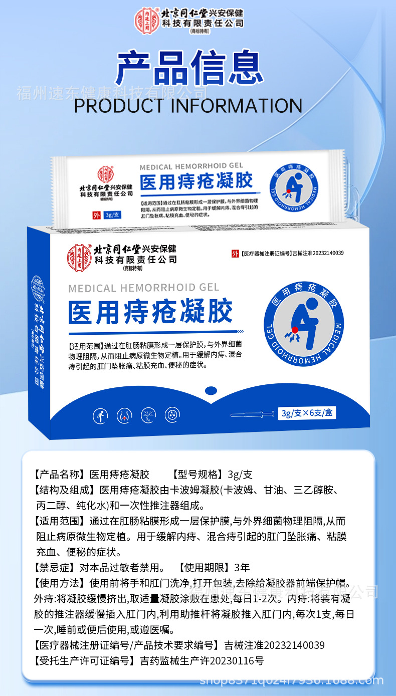 • Beitong-의료용 치질 젤 3g*6 개/상자 200 상자/상자