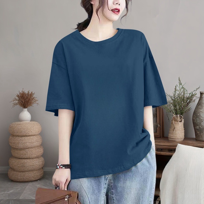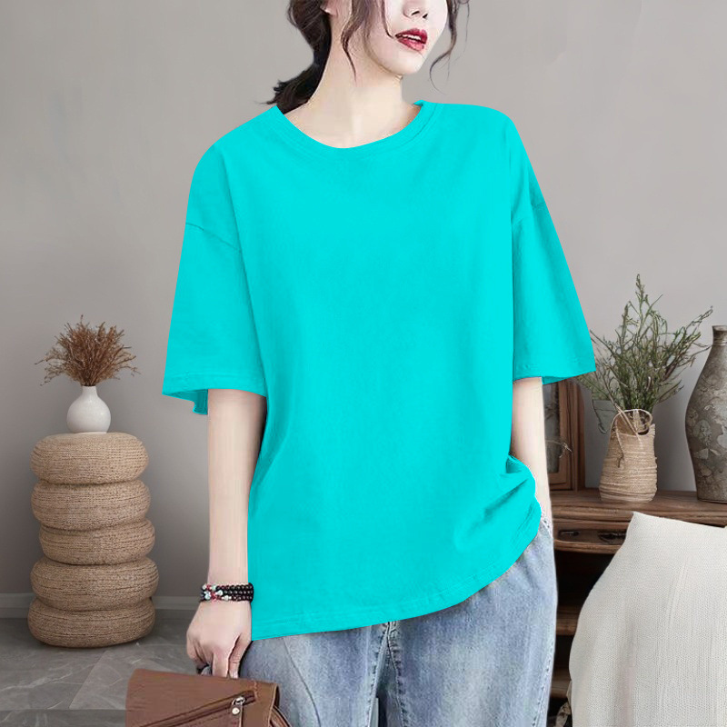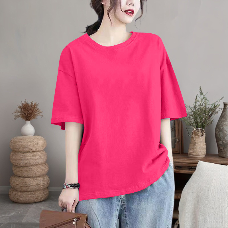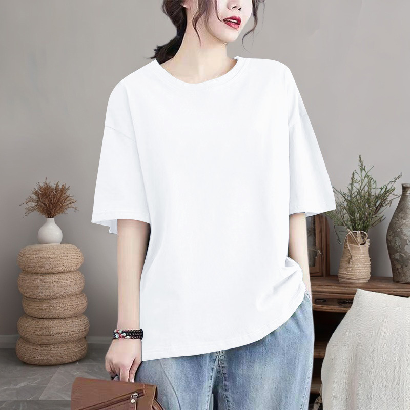 100% 퓨어 코튼 스타일리시 여성 티셔츠 단색 플러스 사이즈 탑 루즈 올매치 반소매 티셔츠 한국베이스 셔츠스토어 가기