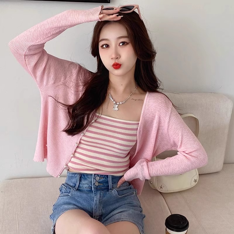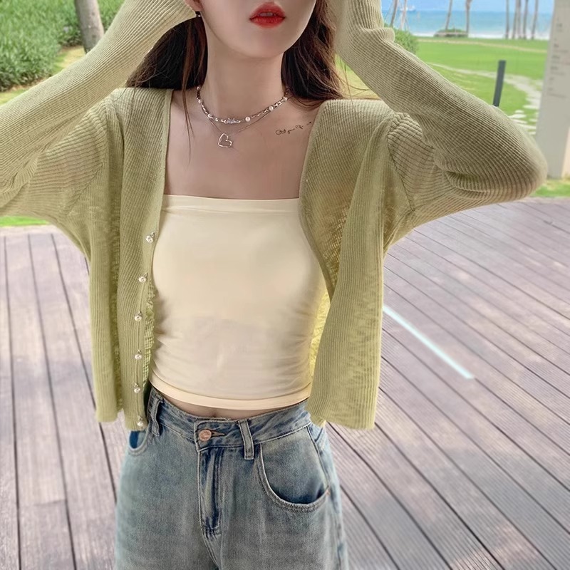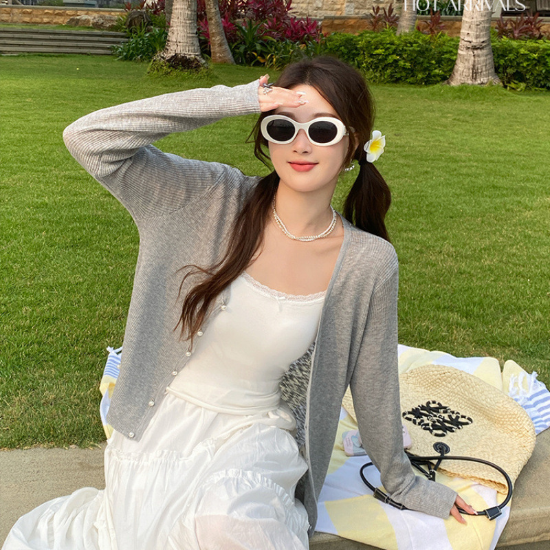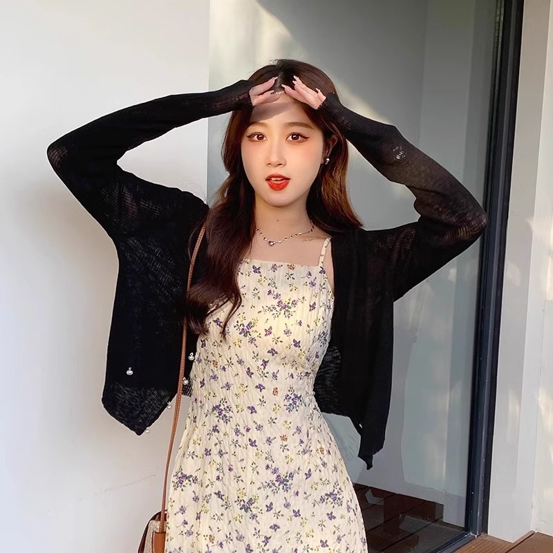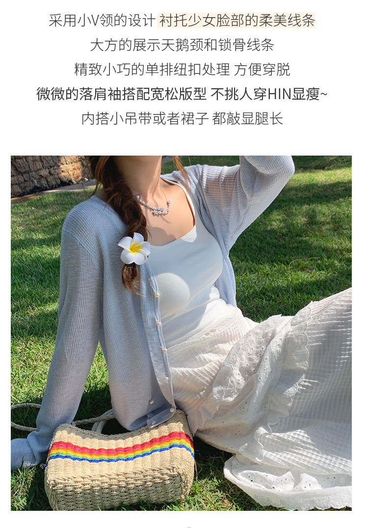 슈퍼 페어리 폭발 선스크린 니트 카디건 여성용 봄과 여름 외부 얇은 블라우스 새로운 아이스 실크 에어컨 셔츠 탑 재킷