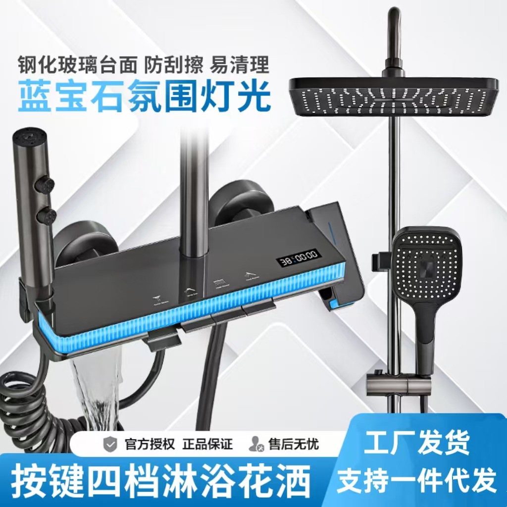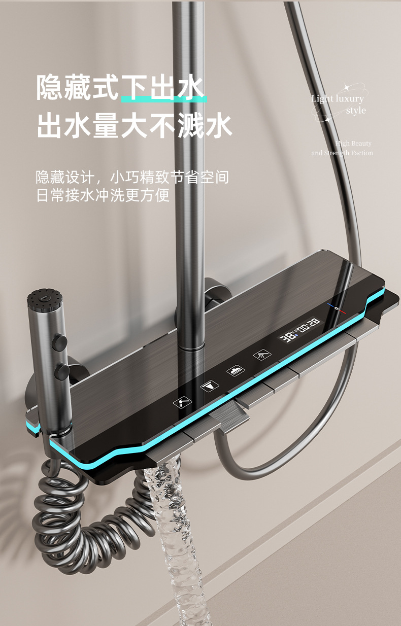 국경 간 회색 샤워 세트 공간 알루미늄 도금 총 샤워 샤워 세트 가정용 욕조 디지털 디스플레이 분위기 빛