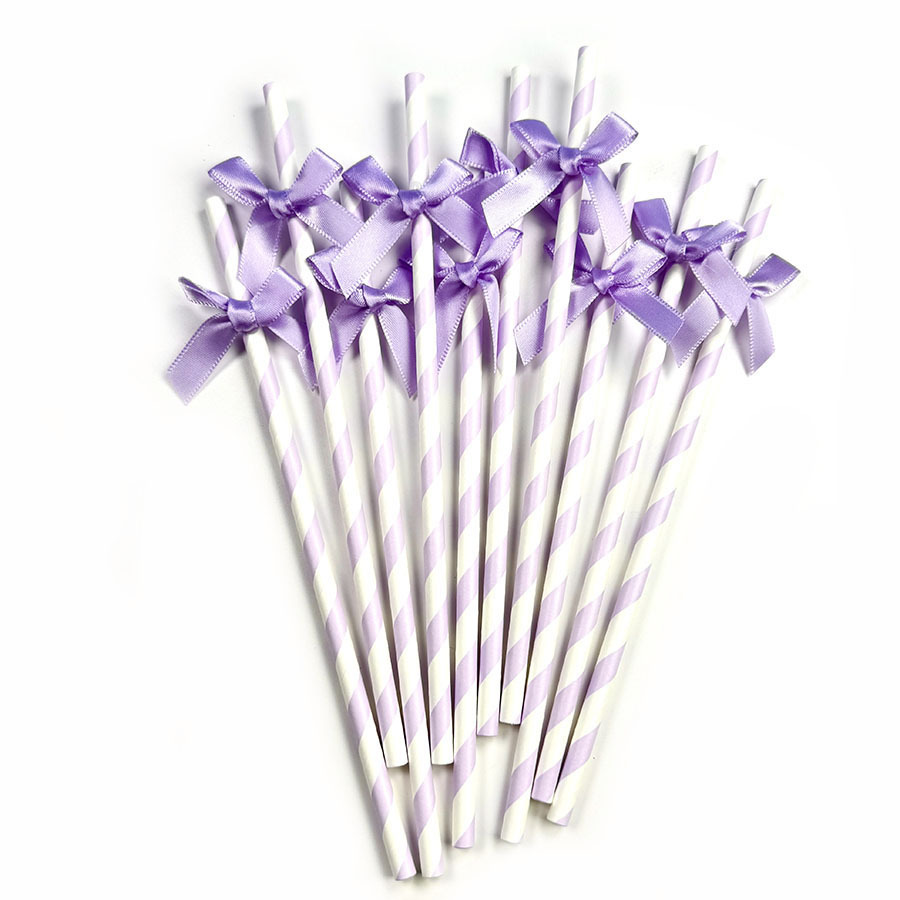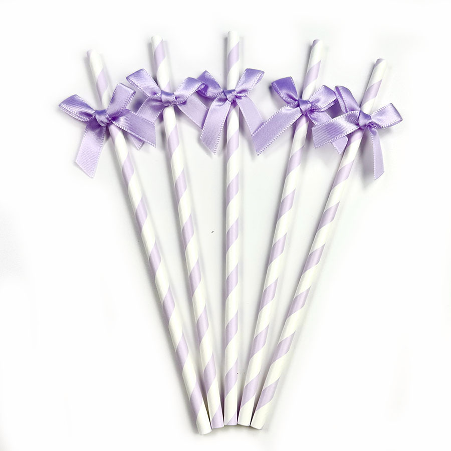 • 연한 보라색 줄무늬 리본 리본 밀짚