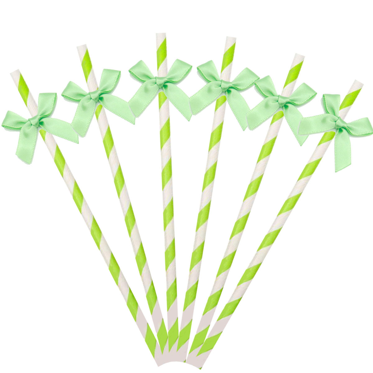 • 과일 녹색 줄무늬 리본 활 밀짚