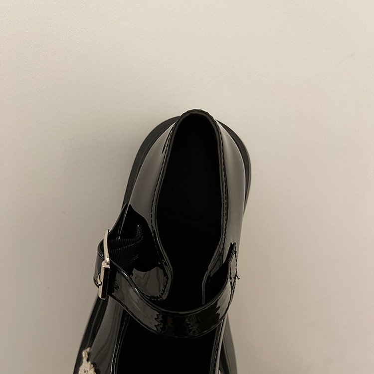 블랙 올 매치 보우 얕은 입 두꺼운 밑창 가죽 신발 여성의 2025 년 새 봄과 가을 버클 메리 제인 싱글 레이어 신발스토어 가기