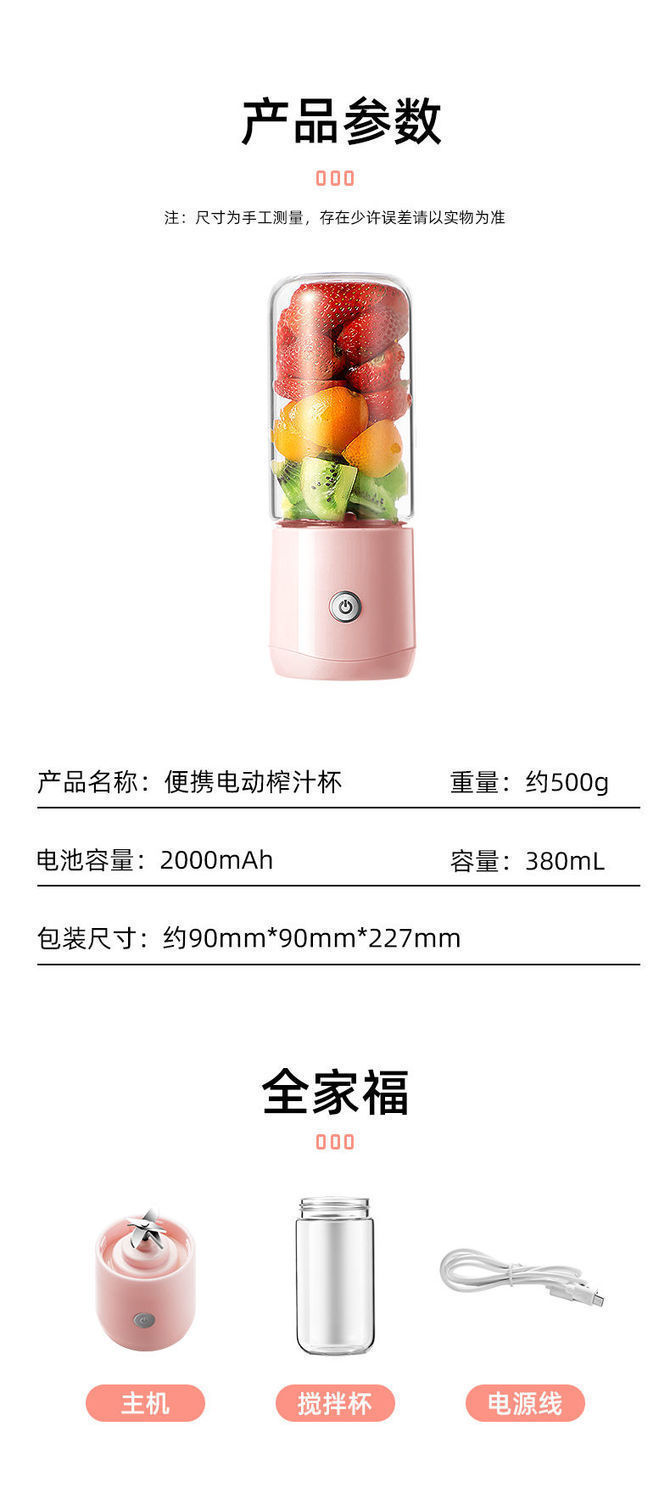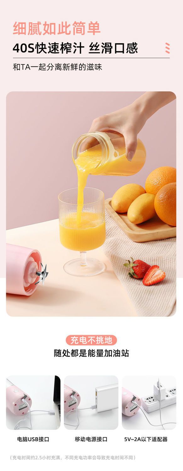 휴대용 과즙 과일 및 야채 주스 컵 충전식 작은 과일 주서 신선한 과일 가정용 미니 튀김 학생스토어 가기