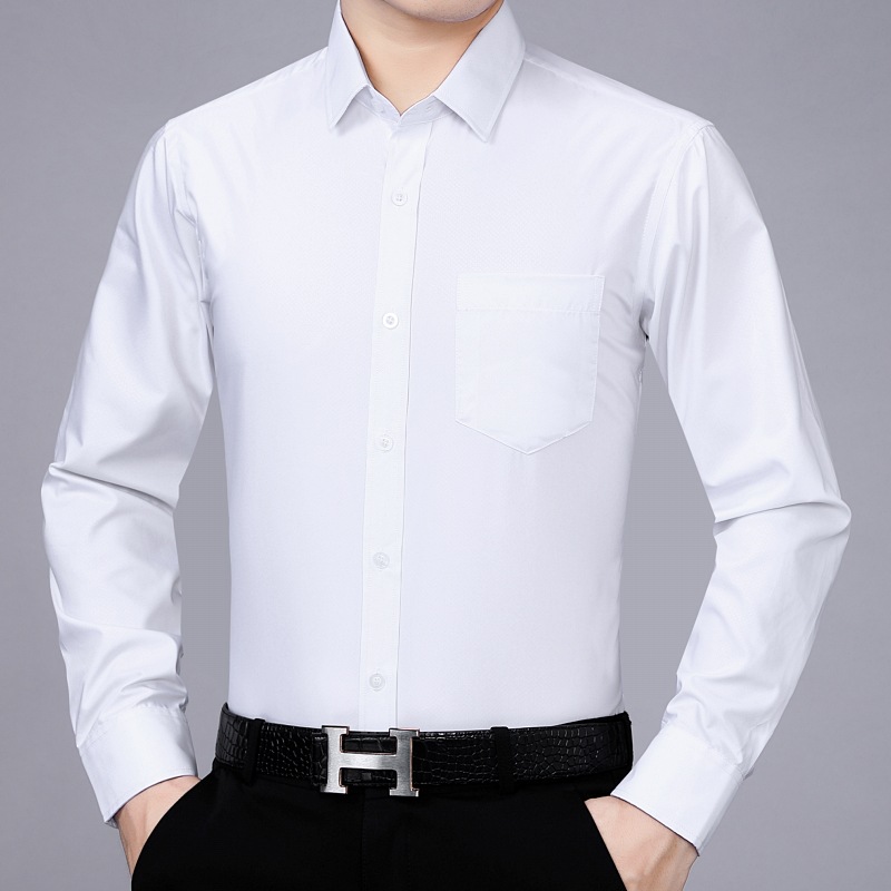 가벼운 고급 고급 고급 사계절 최고의 뽕나무 실크 남성 셔츠 중년 비즈니스 캐주얼 옷깃 긴 소매 단색 셔츠스토어 가기