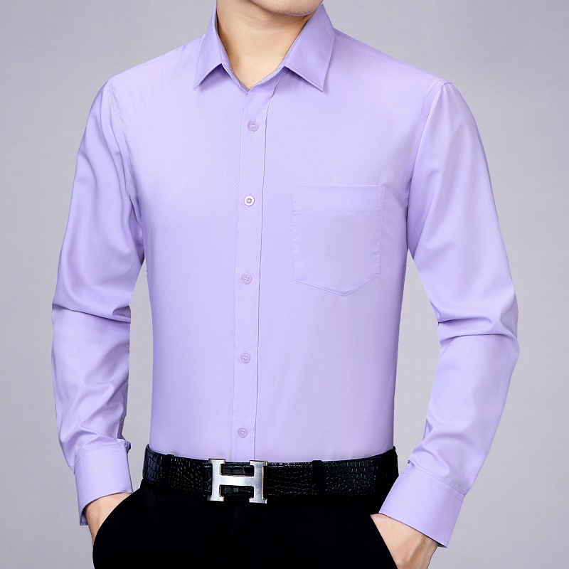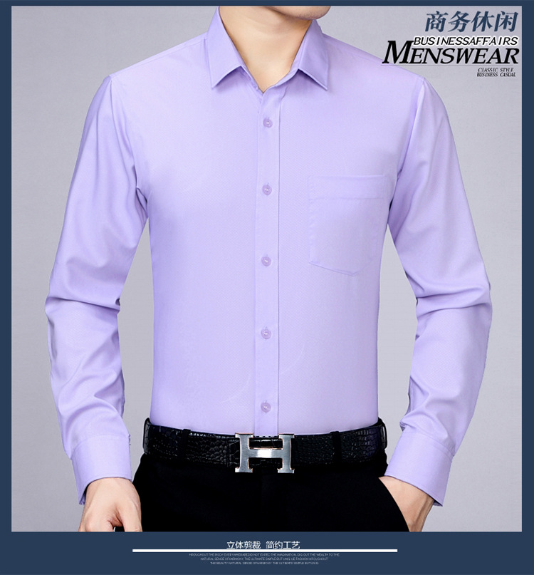 가벼운 고급 고급 고급 사계절 최고의 뽕나무 실크 남성 셔츠 중년 비즈니스 캐주얼 옷깃 긴 소매 단색 셔츠