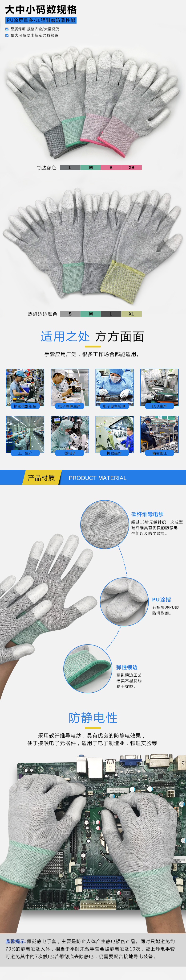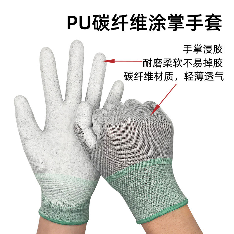 정전기 방지 장갑 탄소 섬유 pu 코팅 손가락 전자 공장 먼지없는 작업장 분배 미끄럼 방지 코팅 팜 장갑 공장 도매스토어 가기