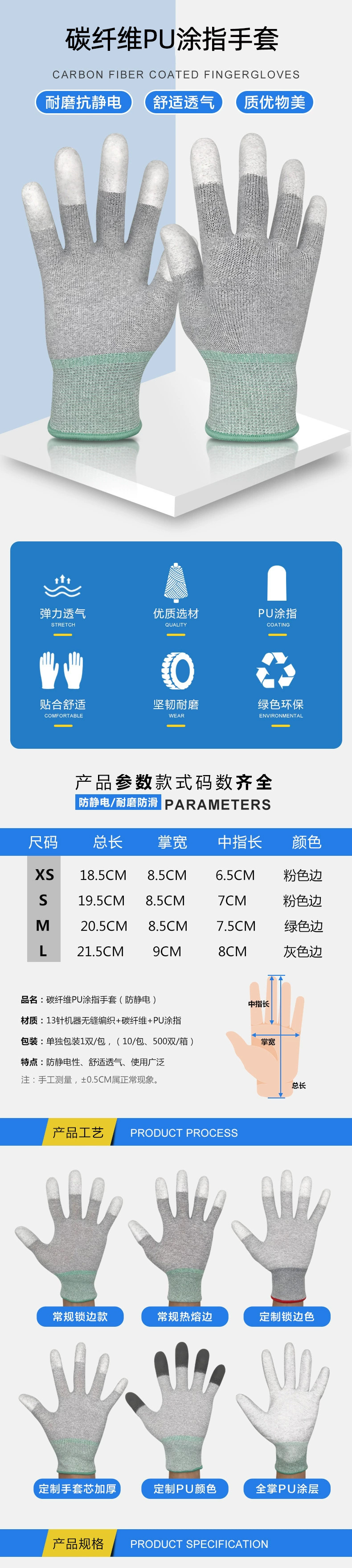 정전기 방지 장갑 탄소 섬유 pu 코팅 손가락 전자 공장 먼지없는 작업장 분배 미끄럼 방지 코팅 팜 장갑 공장 도매