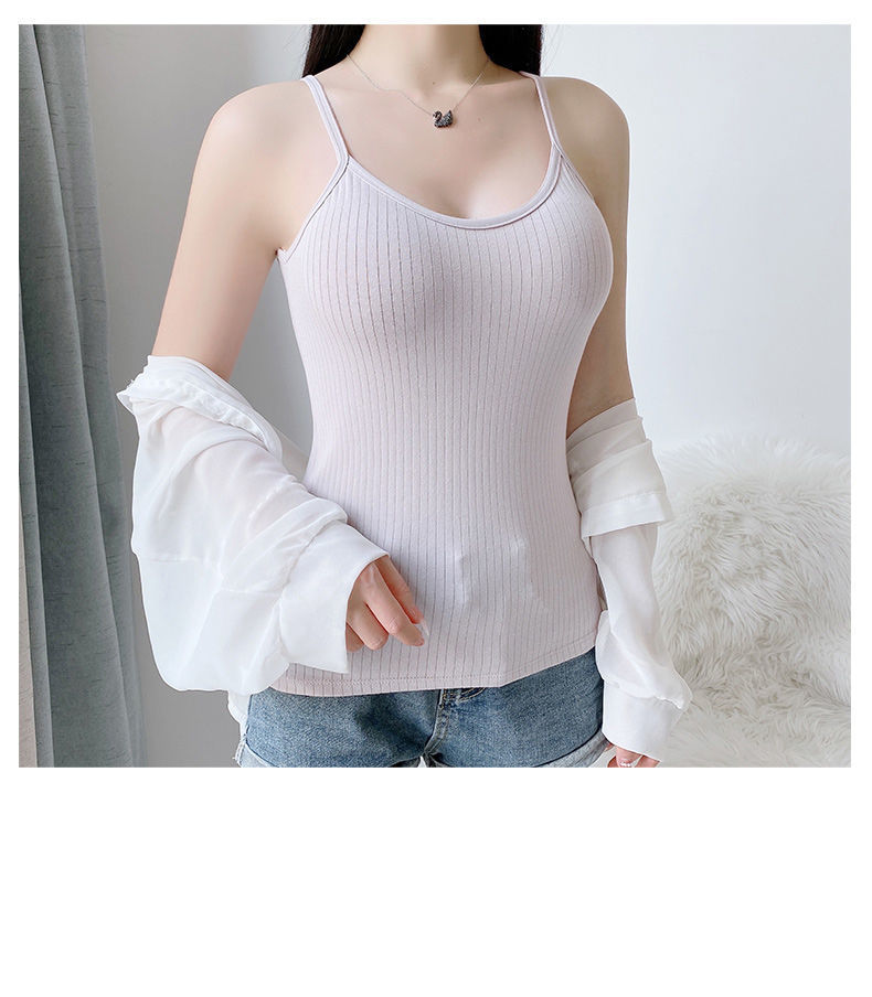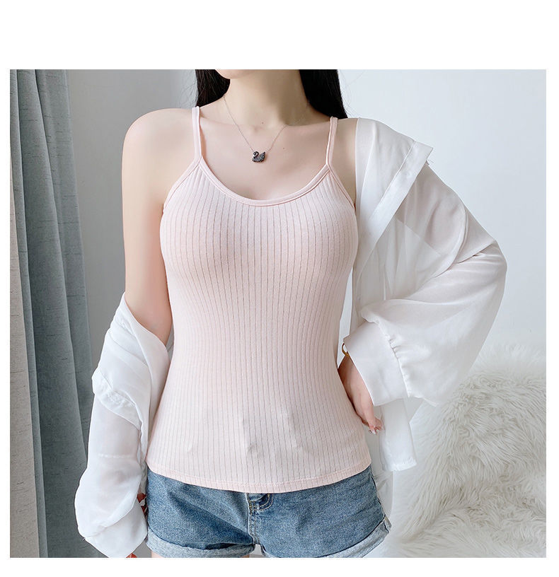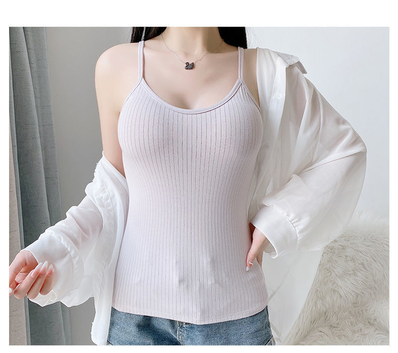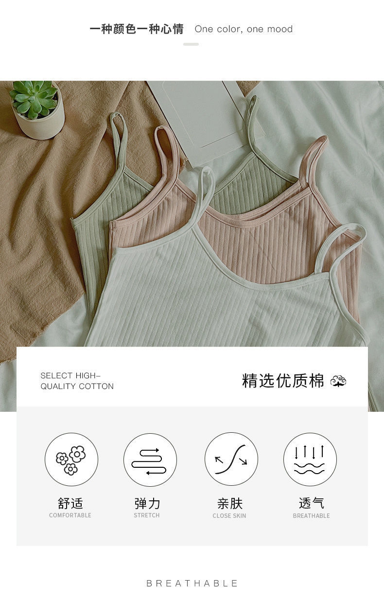 스트라이프 리브 카미솔 탑베이스 셔츠, 내부 스레드 카미솔 여자 여름 퓨어 코튼 이너 플러스 사이즈 올 매치스토어 가기
