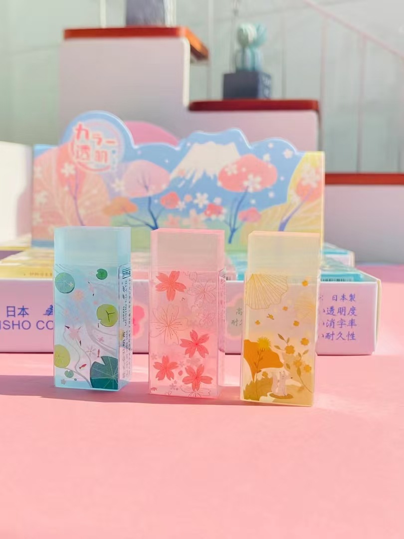 일본산 후지다 컬러풀 투명 대형 학생용 고급스러운 연필 지우개 (미술/그림용)스토어 가기