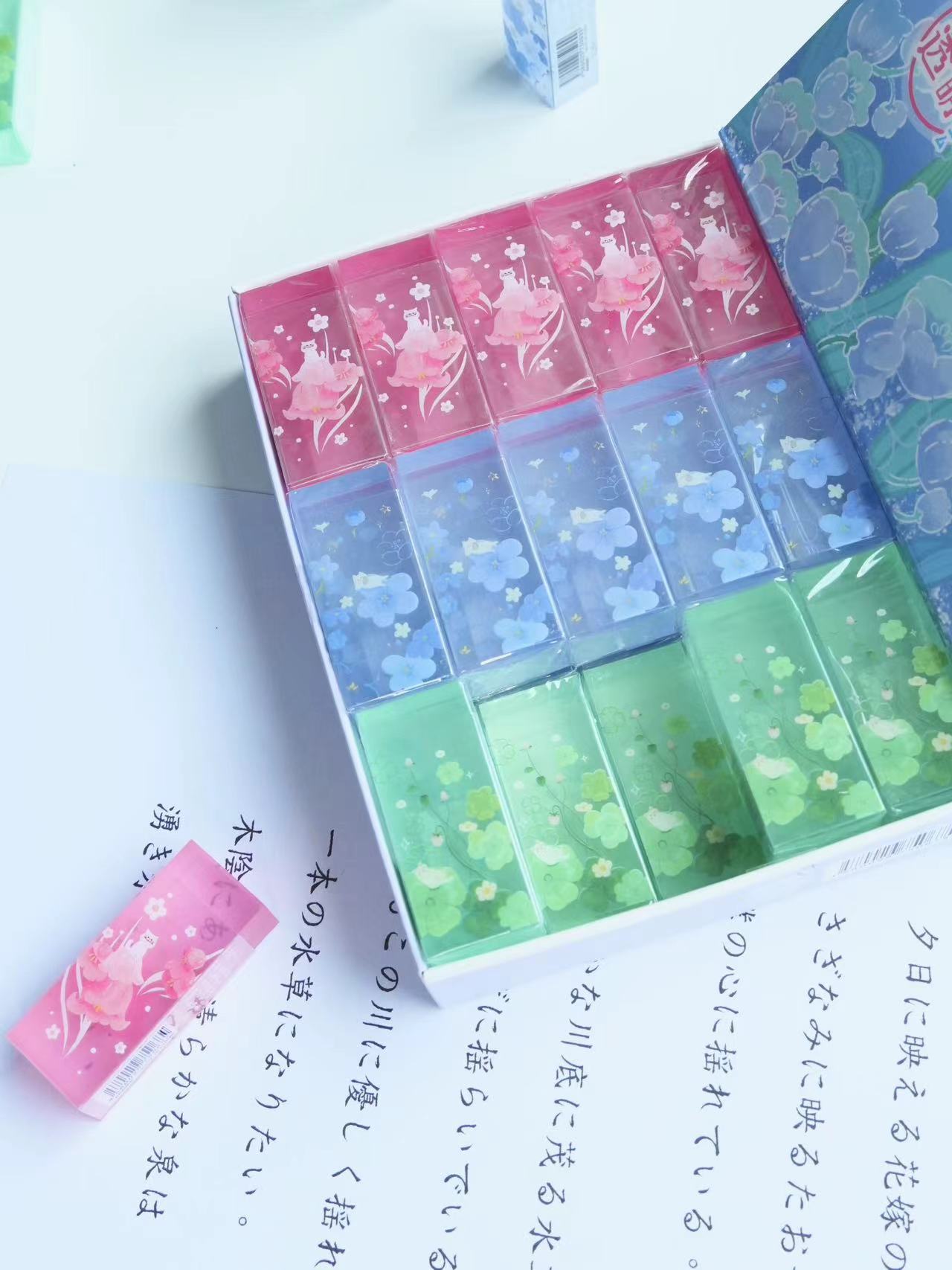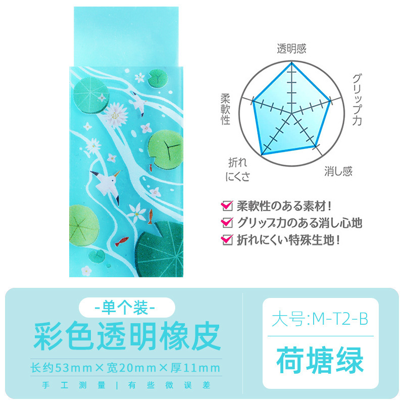 일본산 후지다 컬러풀 투명 대형 학생용 고급스러운 연필 지우개 (미술/그림용)