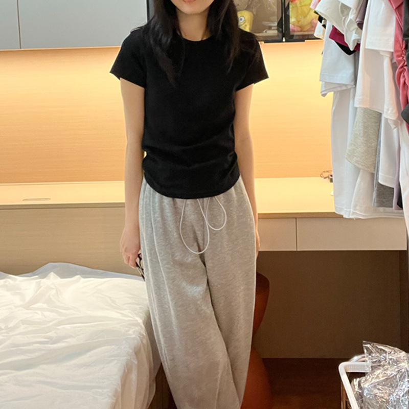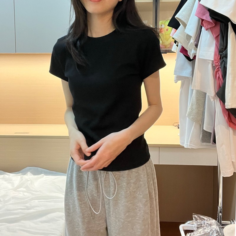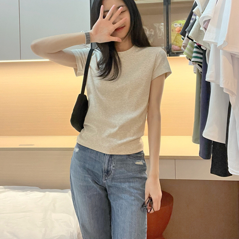 면 어깨 반팔 티셔츠 여자 여름 캐주얼 올 매치 슬림 핏 탑 화이트 티셔츠 슬리밍 베이직베이스 셔츠스토어 가기