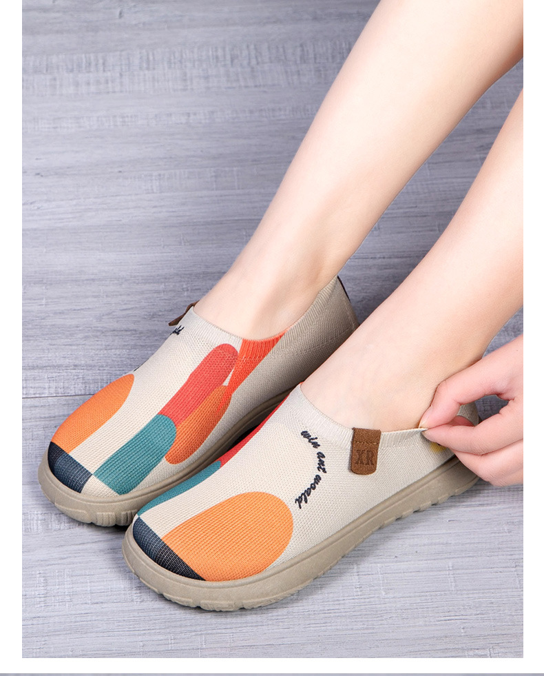 봄과 가을 새로운 오래 된 베이징 천 신발 여성의 캐주얼 플라잉 짠 두꺼운 단독 페인트 싱글 신발 피곤하지 않은 여성을위한 통기성 소프트 단독 신발스토어 가기