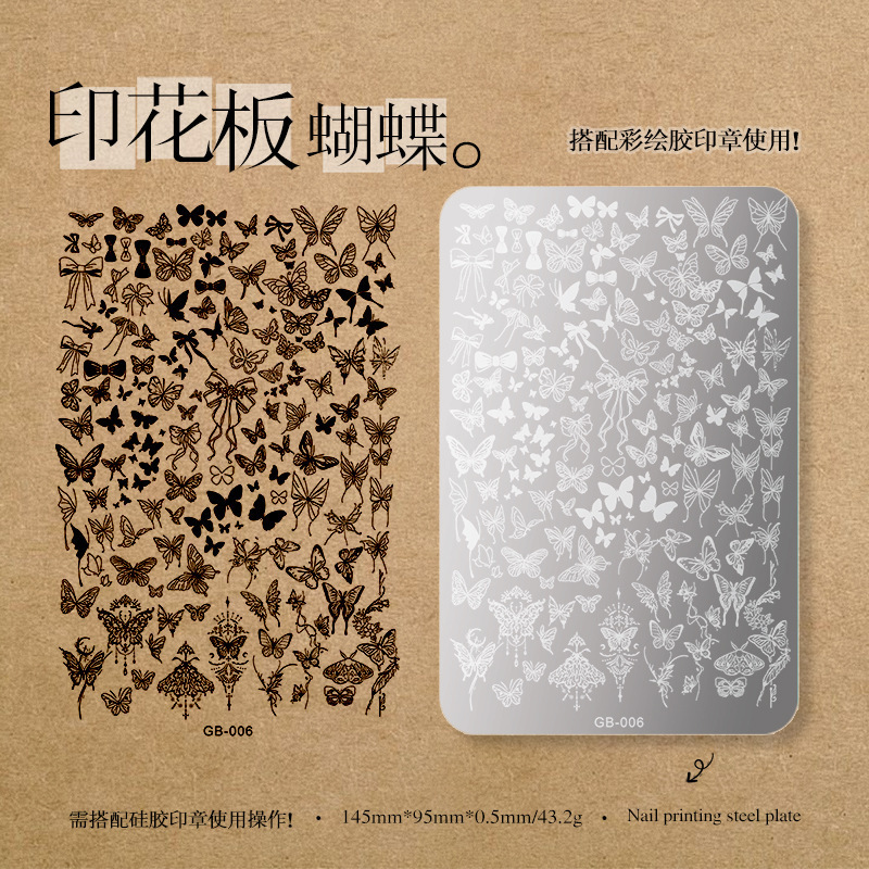 네일 아트 인쇄 강판 네일 샵 다기능 작은 패턴 전송 템플릿 도구 나비 꽃 잎 레이스