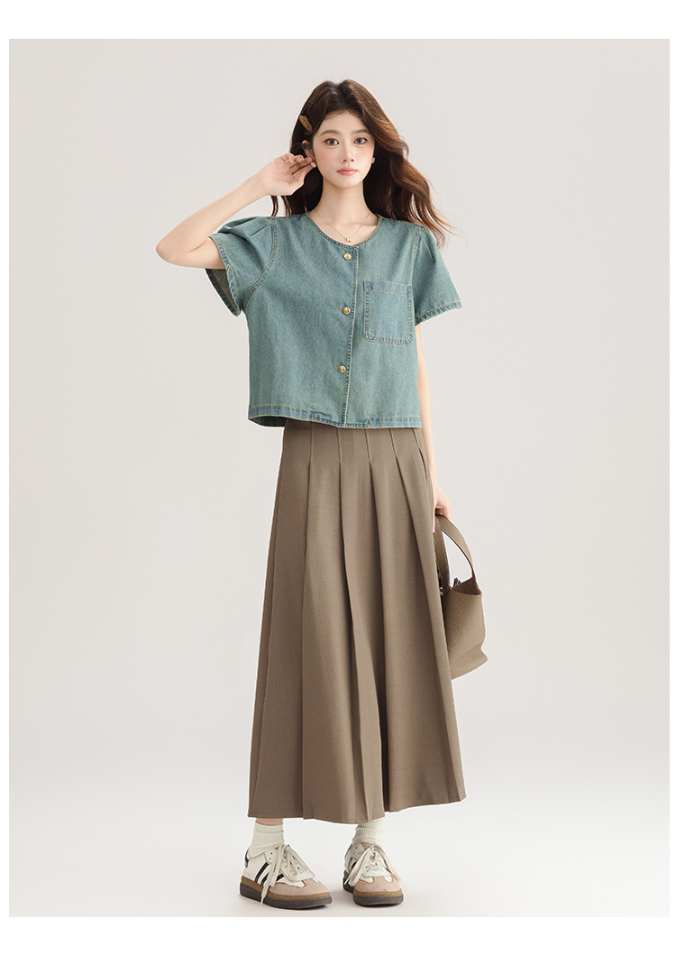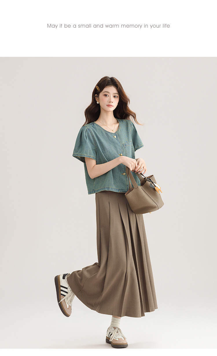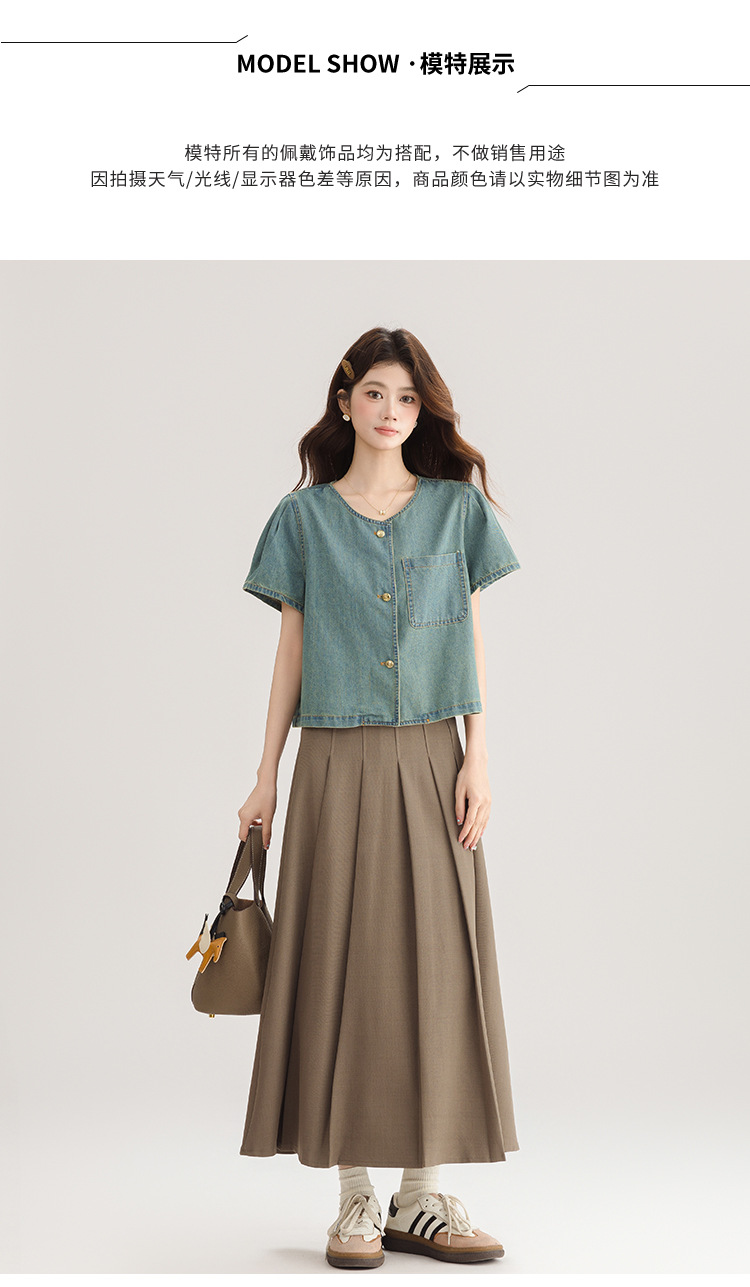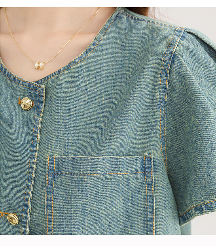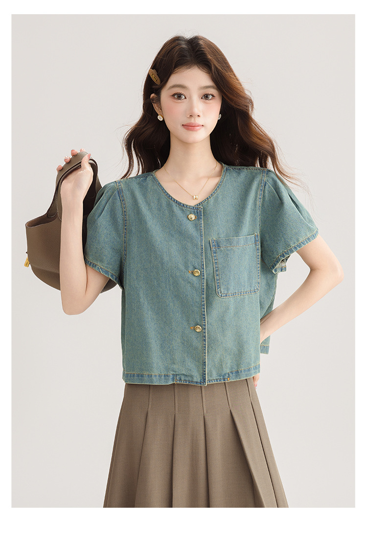 2025 년 여름 새 한국 패션 반팔 데님 셔츠 여성 작은 디자인 센스 퍼프 소매 데님 옷스토어 가기