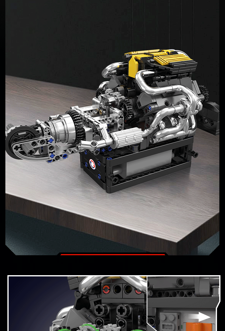유싱 10087-10207 자동차 V8 엔진 엔진 모델 기계식 조립 건물 블록 소년 장난감 국경스토어 가기