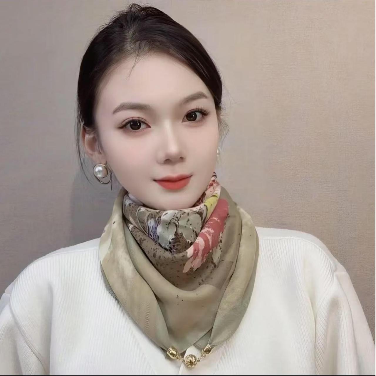 봄과 가을 새로운 하이 엔드 센스 인터넷 연예인 인기있는 트렌디 한 실크 스카프 세련된 세련된 우아한 올 매치 여성 버라이어티 따뜻한 스카프스토어 가기