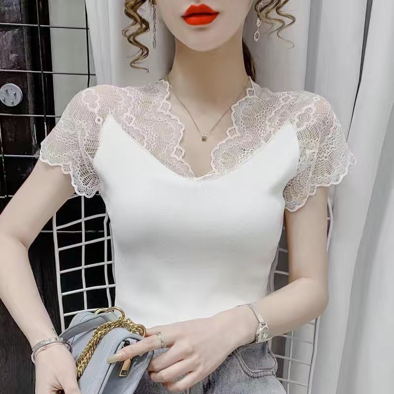 퓨어 화이트 레이스 조끼 고급 한국식 여름베이스 셔츠 올 매치 조끼 여성의 우아한 서양식 인테리어 섹시한스토어 가기