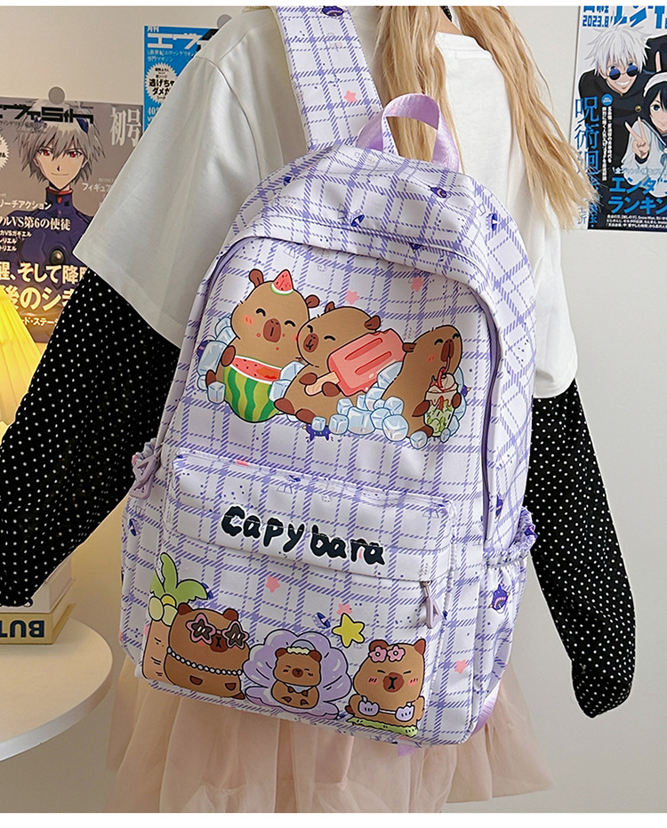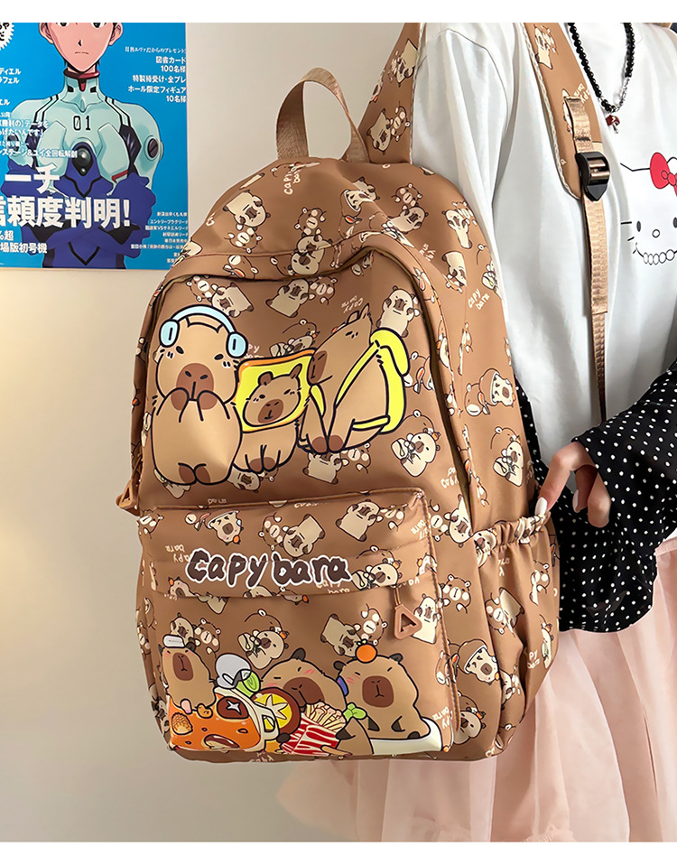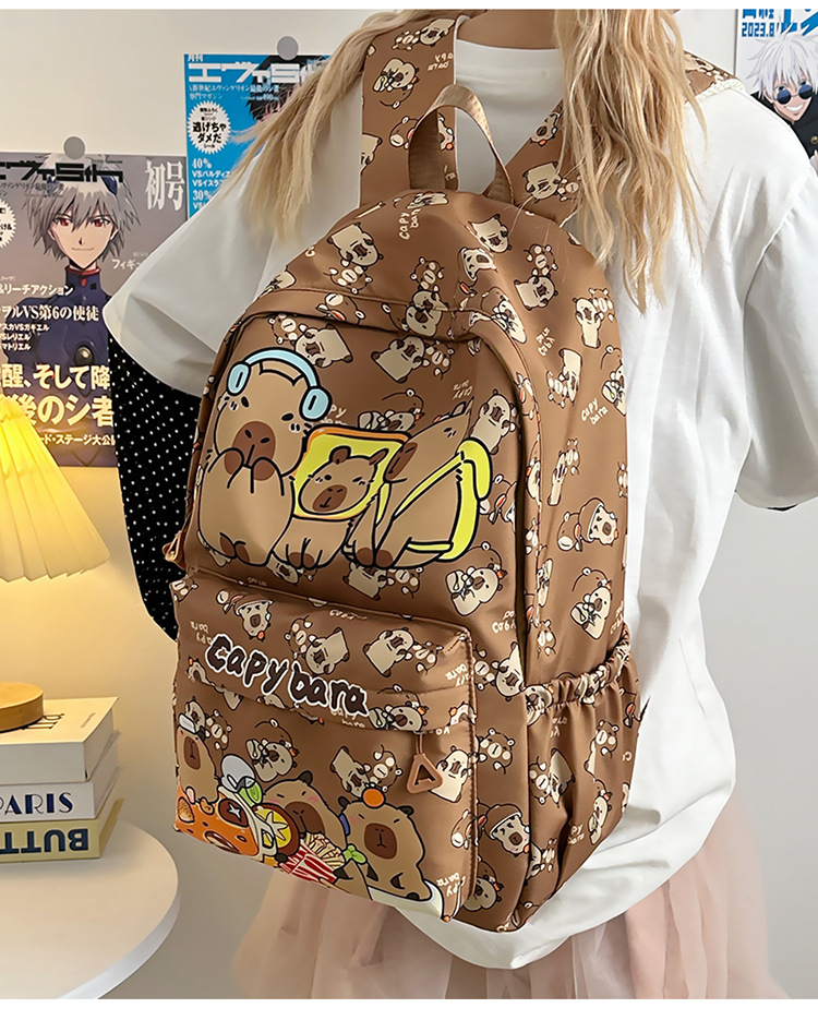 국경 새로운 배낭 귀여운 인쇄 만화 대용량 학교 가방 유행 소년 소녀 학생 경량 가방