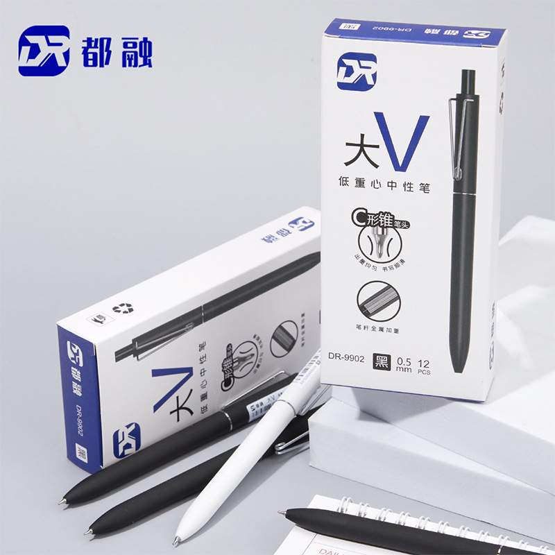 Drosong 대형 V 와이어 클립 젤 펜 간단한 프레스 빠른 건조 블랙 0.5mm 리필 초등 및 중등 학교 학생 서명 펜