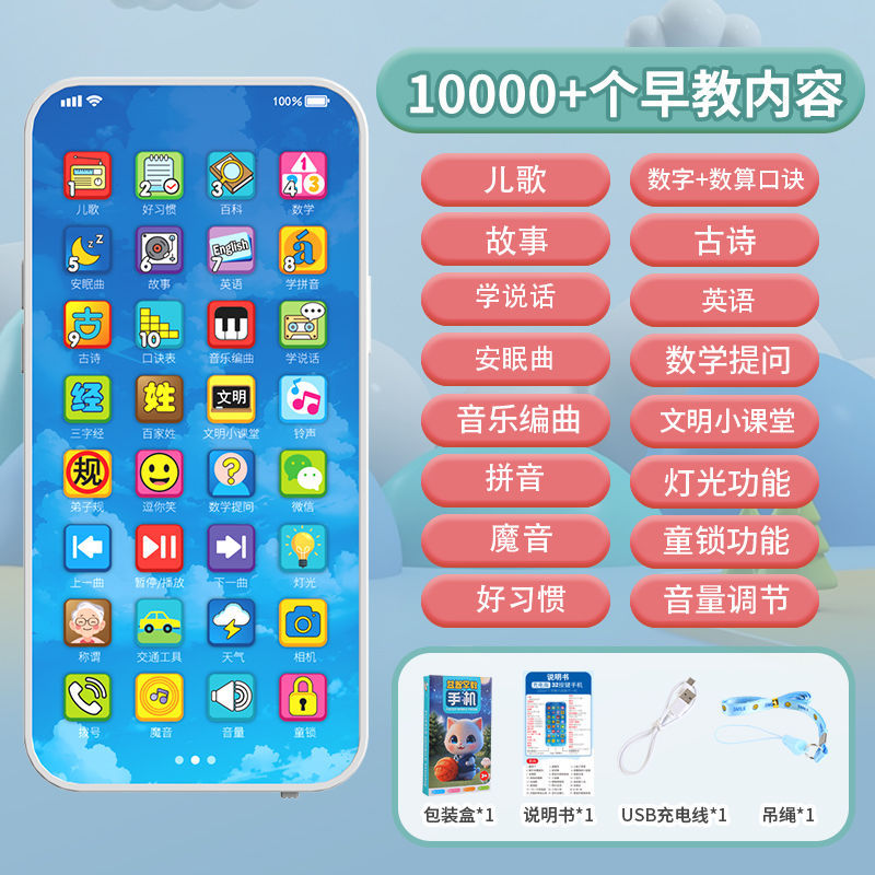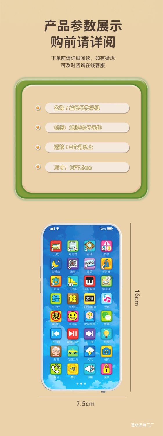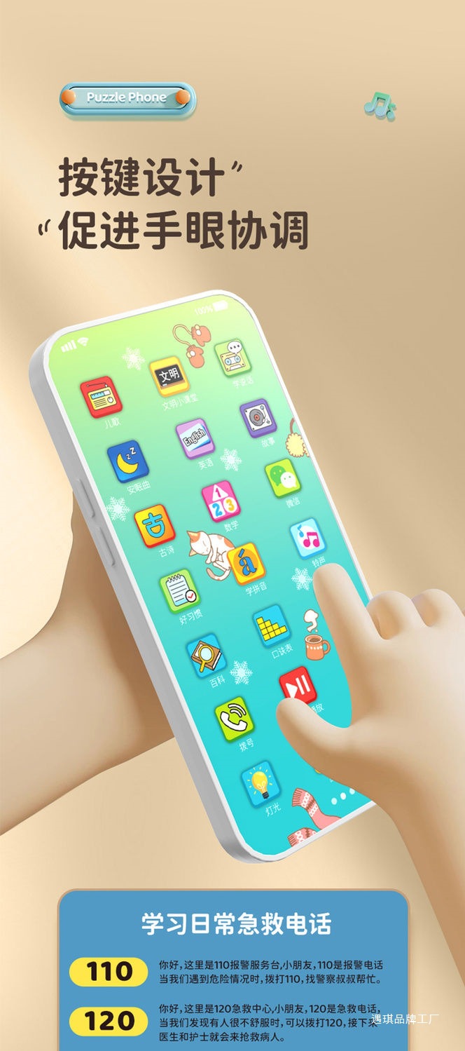 충전식 터치 스크린 다기능 조기 교육 기계 시뮬레이션 장난감 아기 퍼즐 소년과 소녀 전화 아기 어린이 휴대 전화