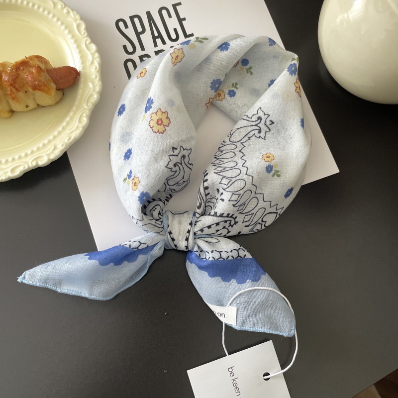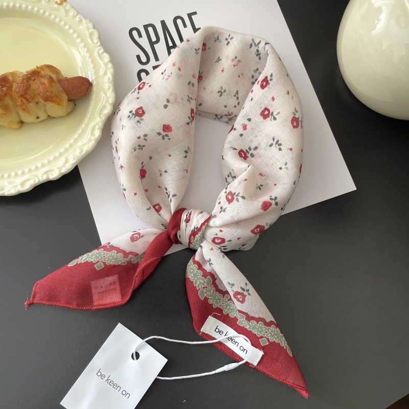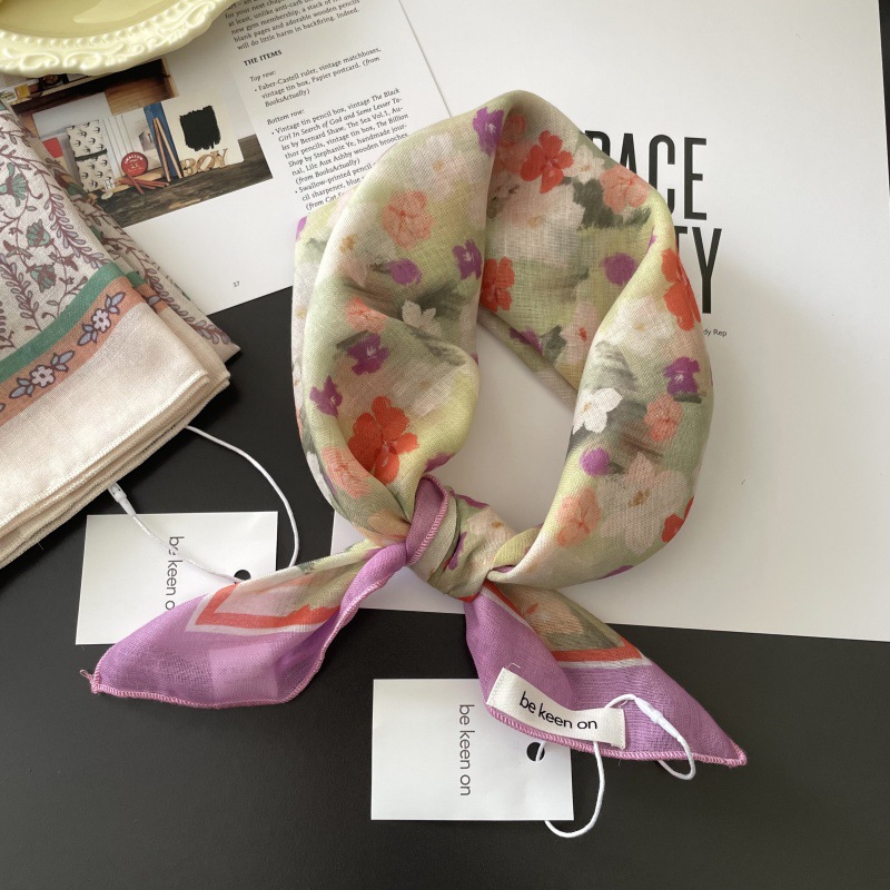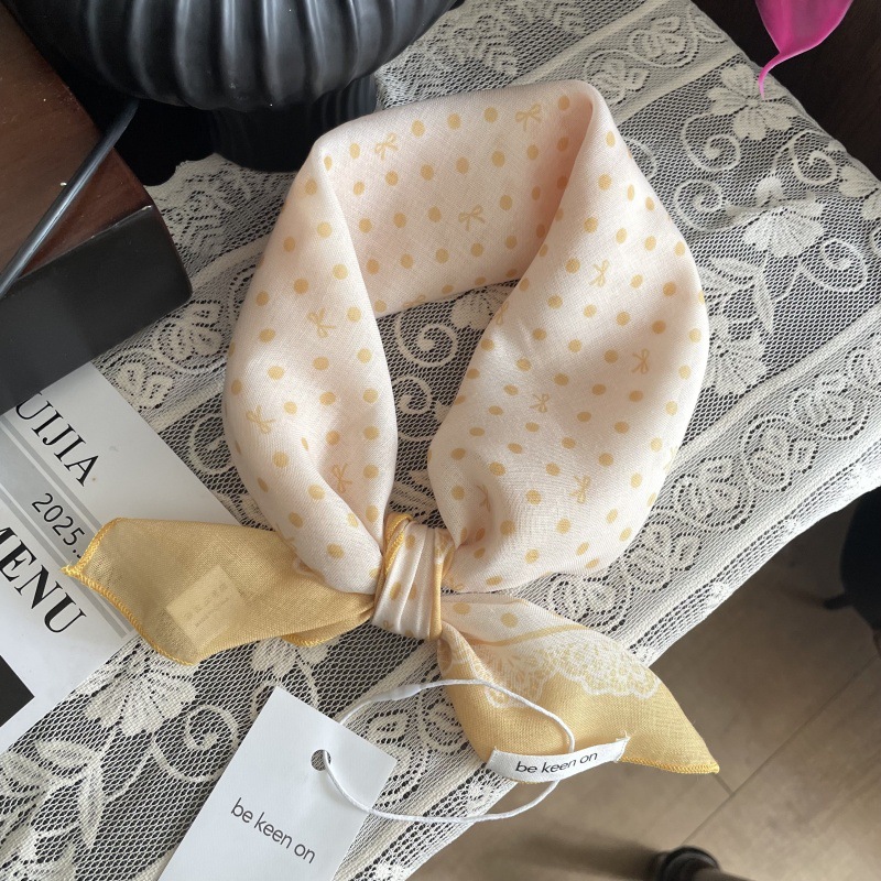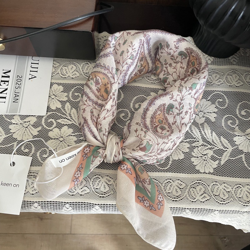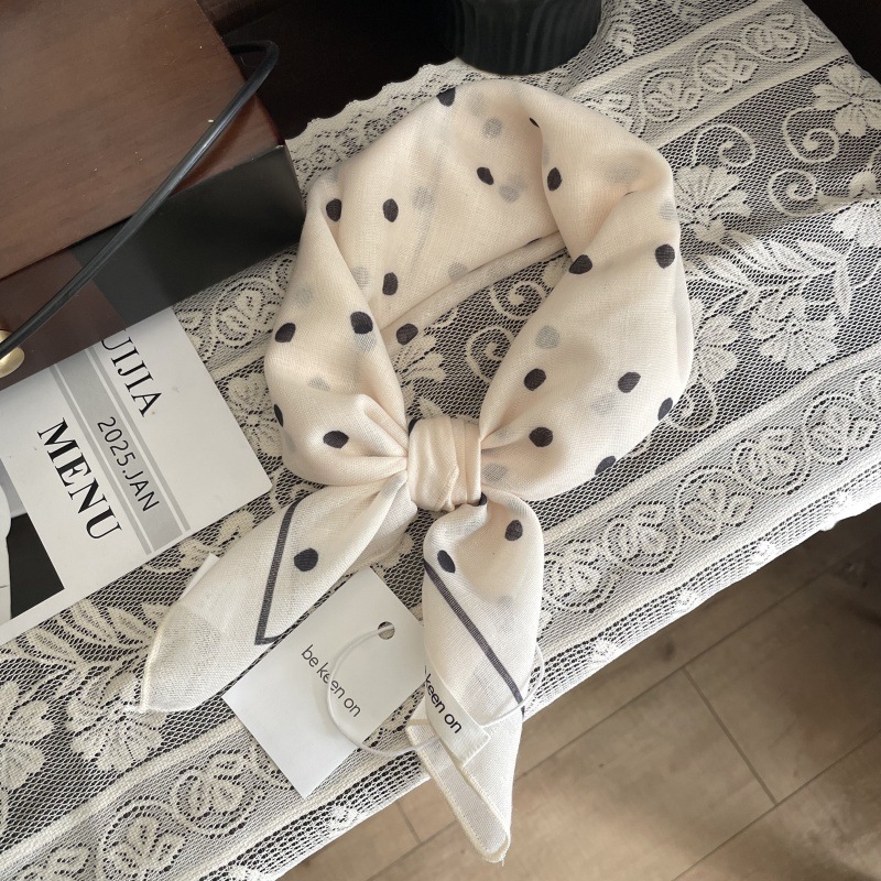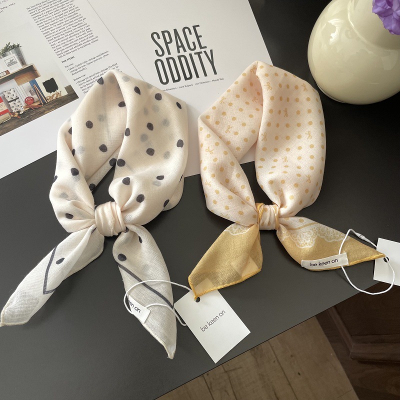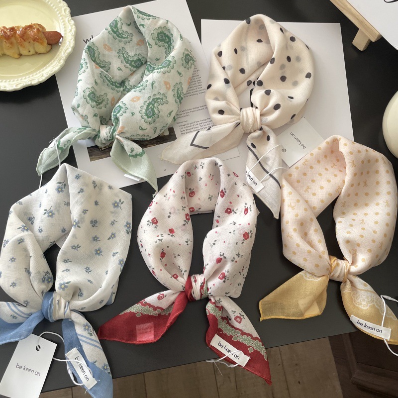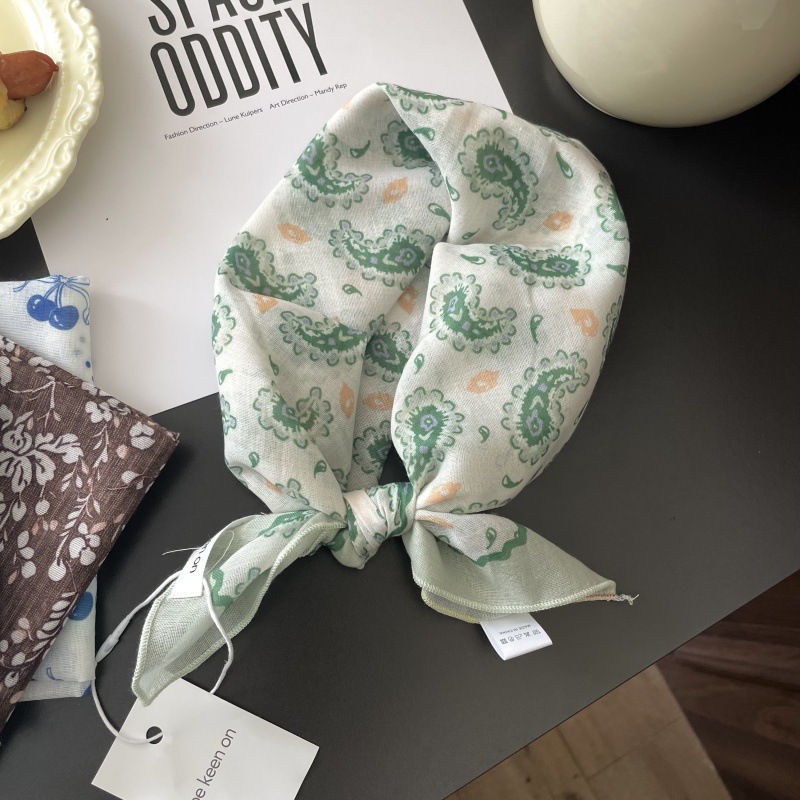 피부 친화적 인 부드러운면 및 린넨 통기성 목 보호 작은 사각형 웨이브 포인트 캐슈 꽃 터번 수출 한국 단일 스카프 소녀