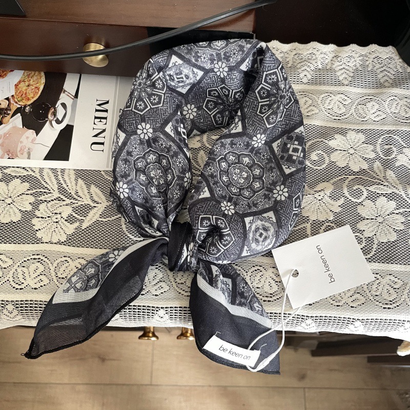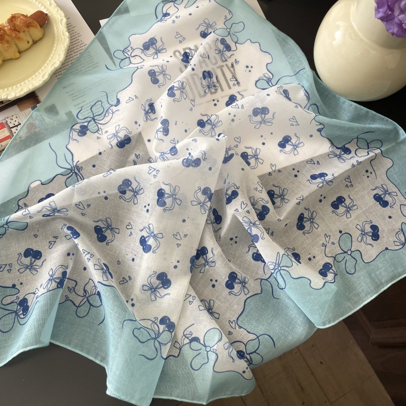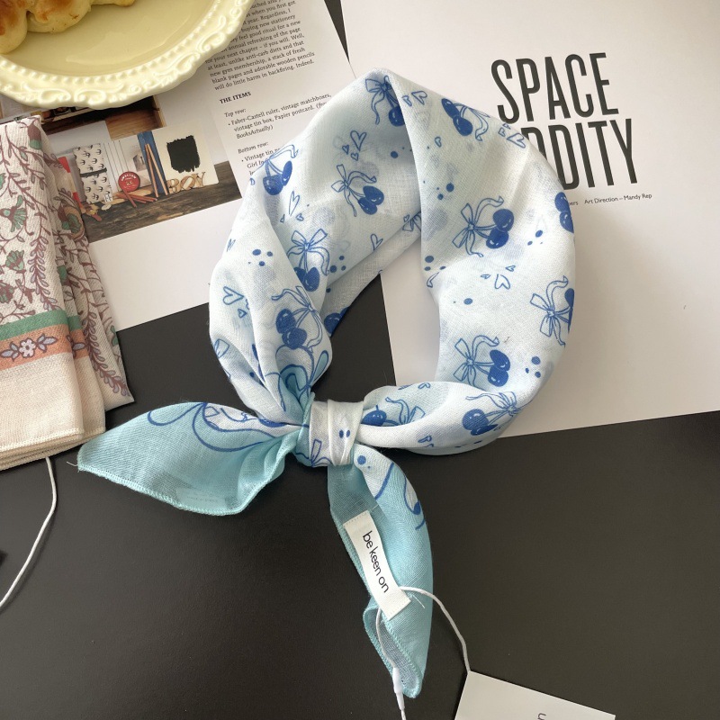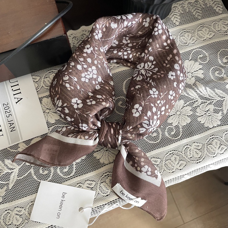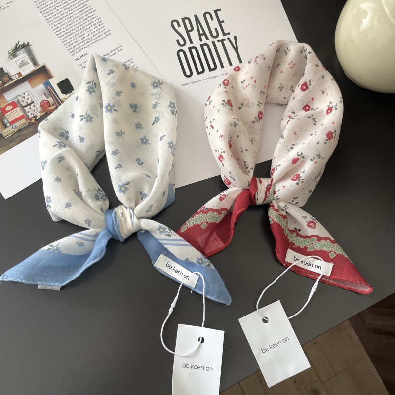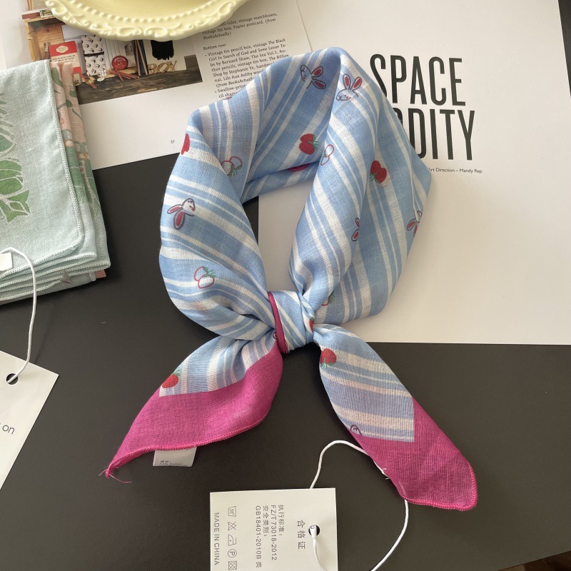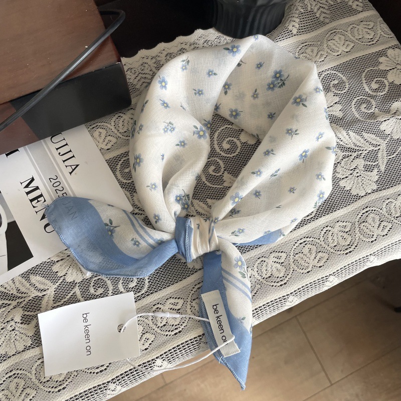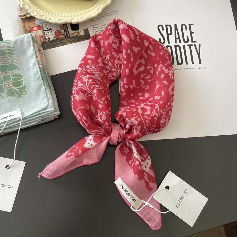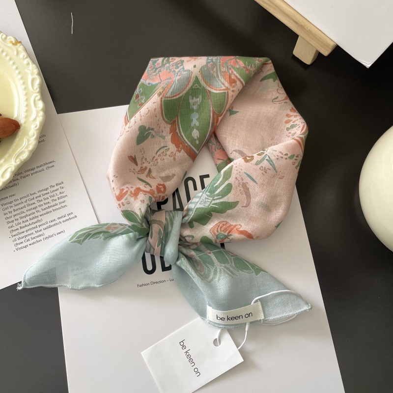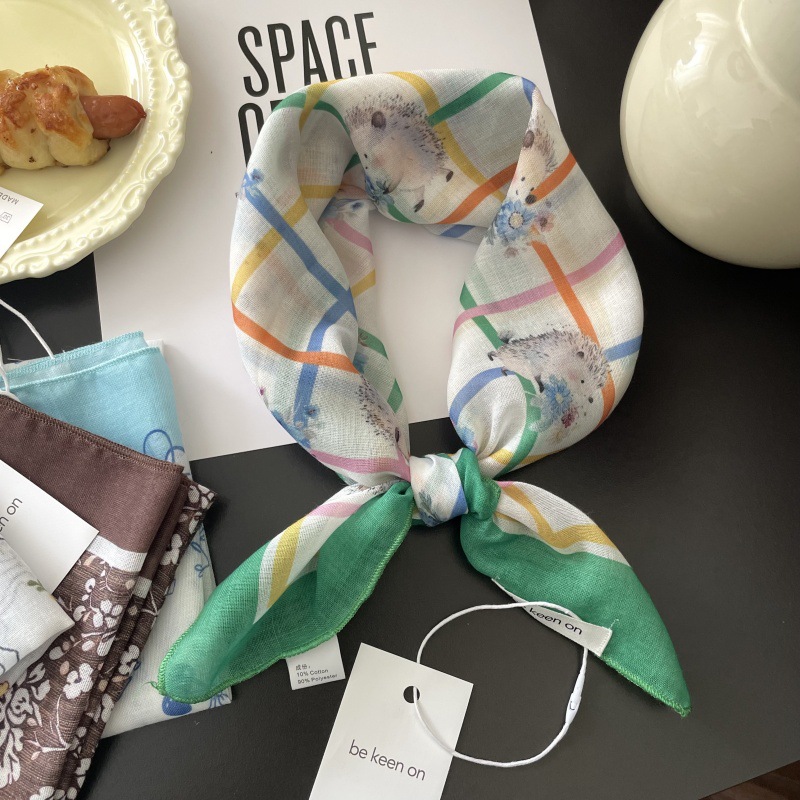 피부 친화적 인 부드러운면 및 린넨 통기성 목 보호 작은 사각형 웨이브 포인트 캐슈 꽃 터번 수출 한국 단일 스카프 소녀