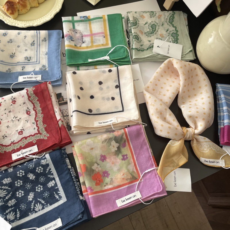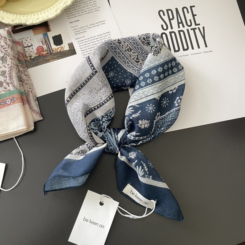 피부 친화적 인 부드러운면 및 린넨 통기성 목 보호 작은 사각형 웨이브 포인트 캐슈 꽃 터번 수출 한국 단일 스카프 소녀스토어 가기