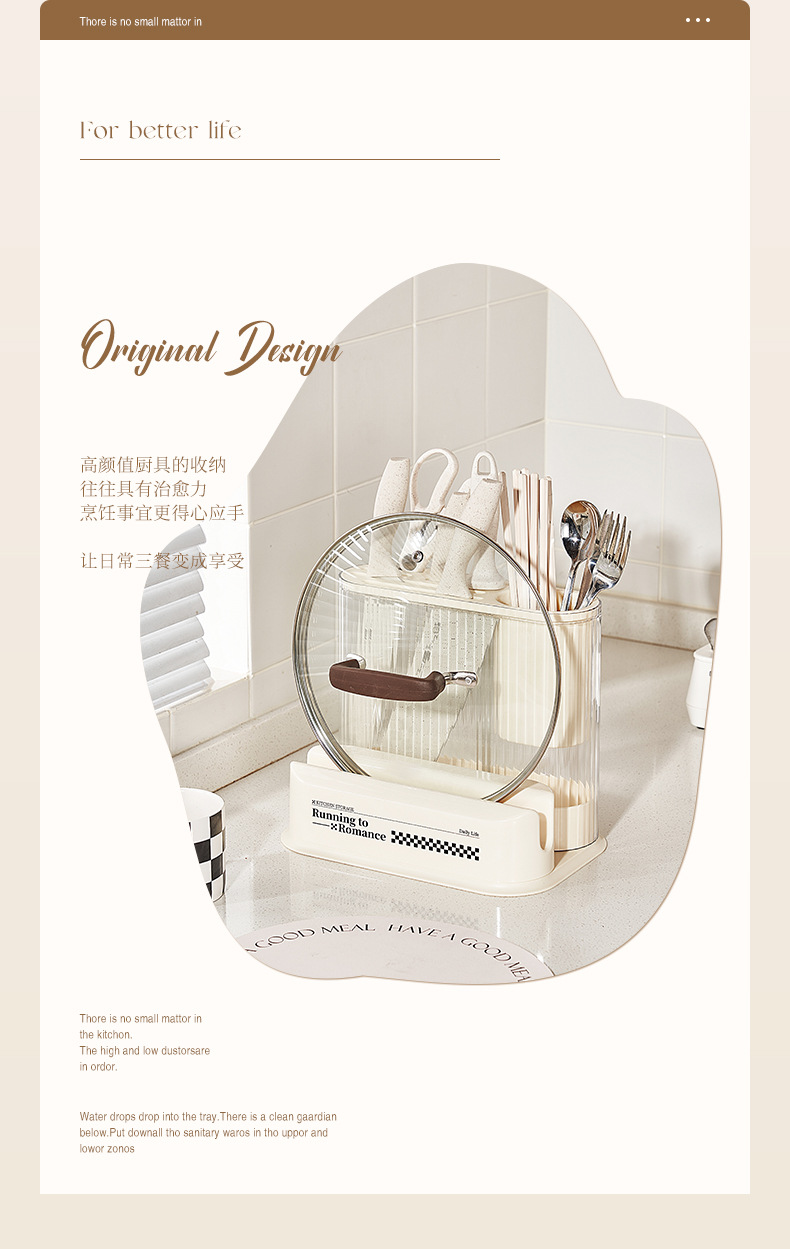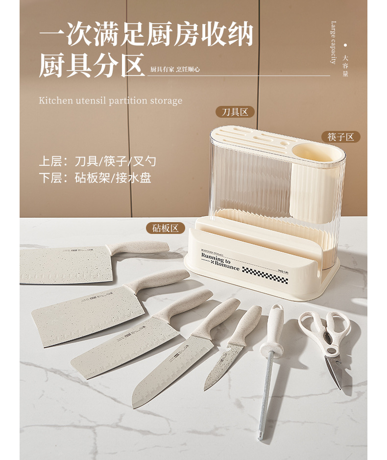 주방 크림 스타일 높은 색상 가치 나이프 홀더 도마 통합 랙 팟 커버 랙 스토리지 나이프와 포크 젓가락 케이지 나이프 스토리지 랙