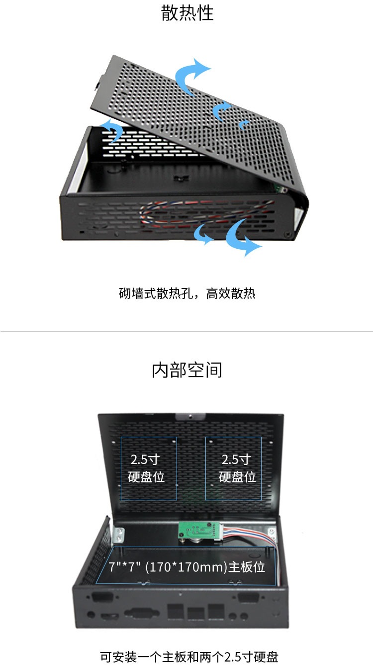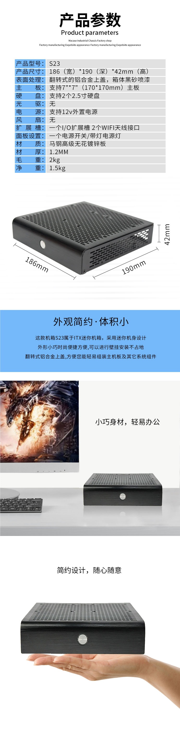 Itx 작은 섀시 냉각 미니 임베디드 휴대용 산업용 컴퓨터 호스트 섀시는 디스플레이를 걸 수 있습니다.스토어 가기