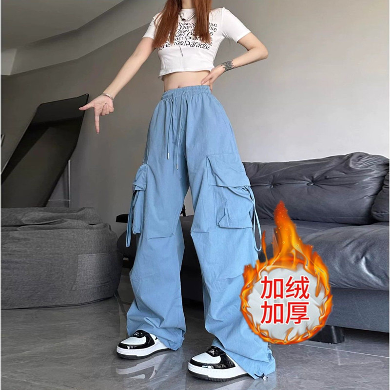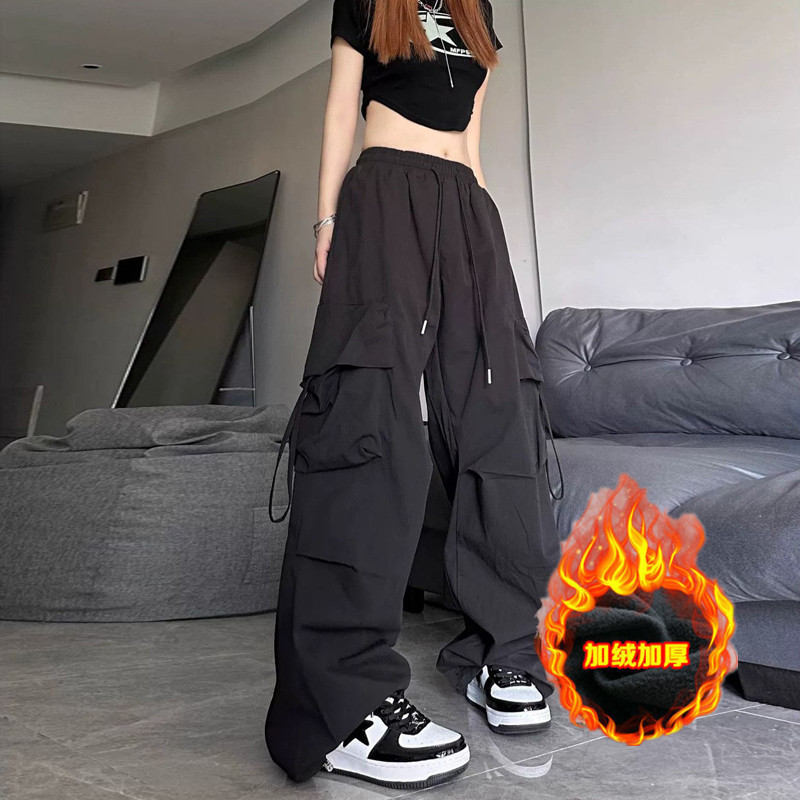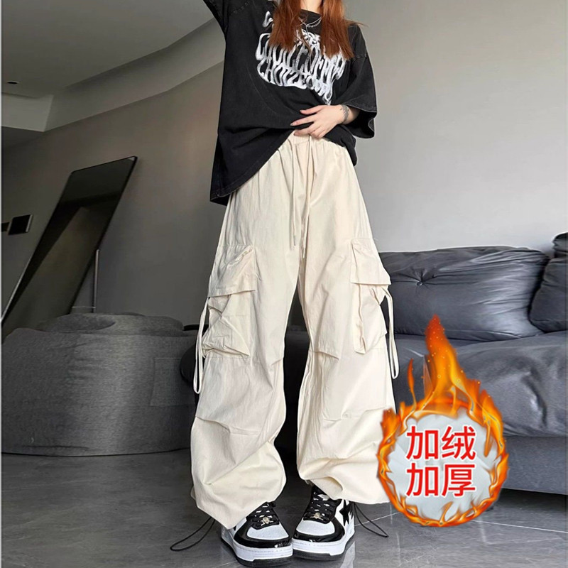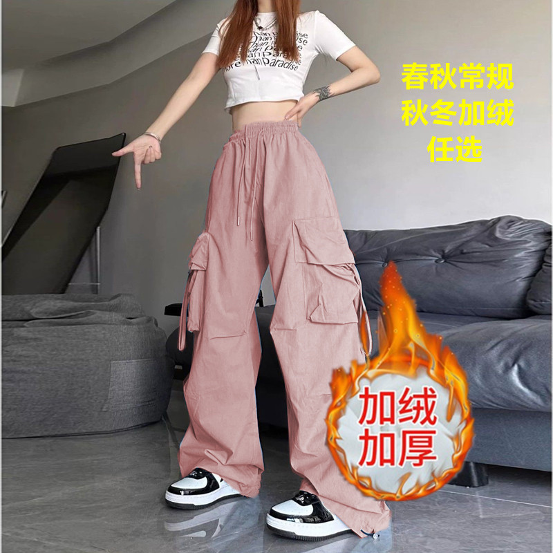 얇은/기모 작업복 남성과 여성의 봄 가을과 겨울 두꺼운 느슨한 슬리밍 학생 넓은 다리 캐주얼 스트레이트 바지스토어 가기