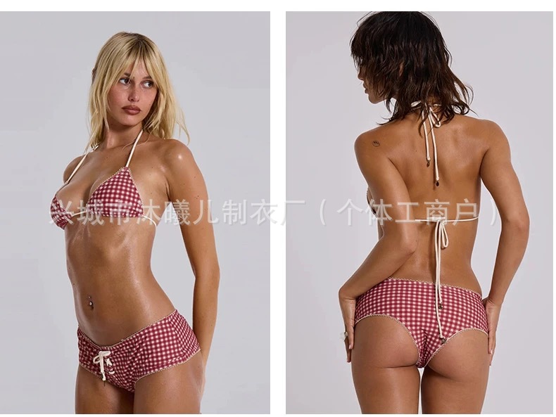 대외 무역 도매 유럽과 미국의 새로운 섹시한 복고풍 뜨거운 소녀 체크 스트랩 삼각형 비키니 온천 휴가 수영복