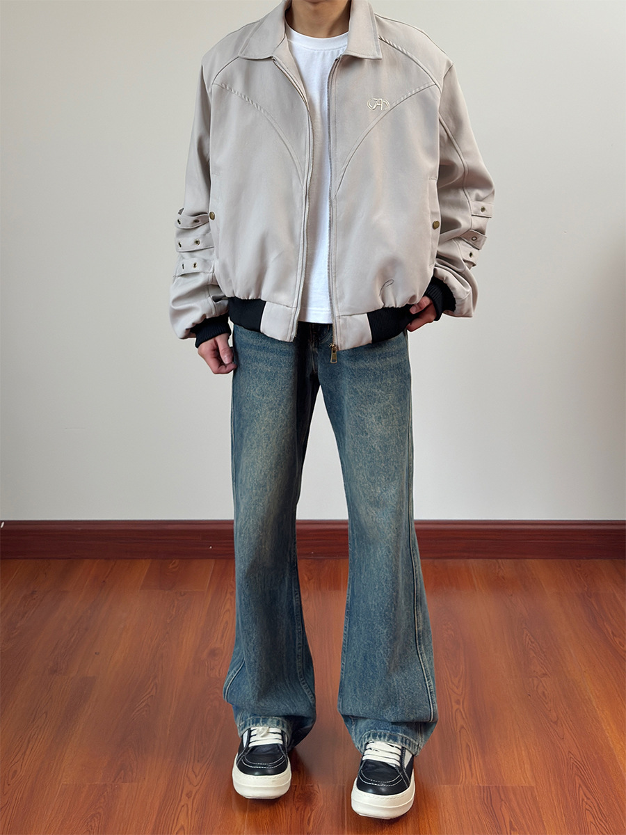 빈티지 세탁 재킷 남녀 2025 봄 새로운 패션 브랜드 새로운 느슨한 옷깃 캐주얼 자수 올 매치 재킷