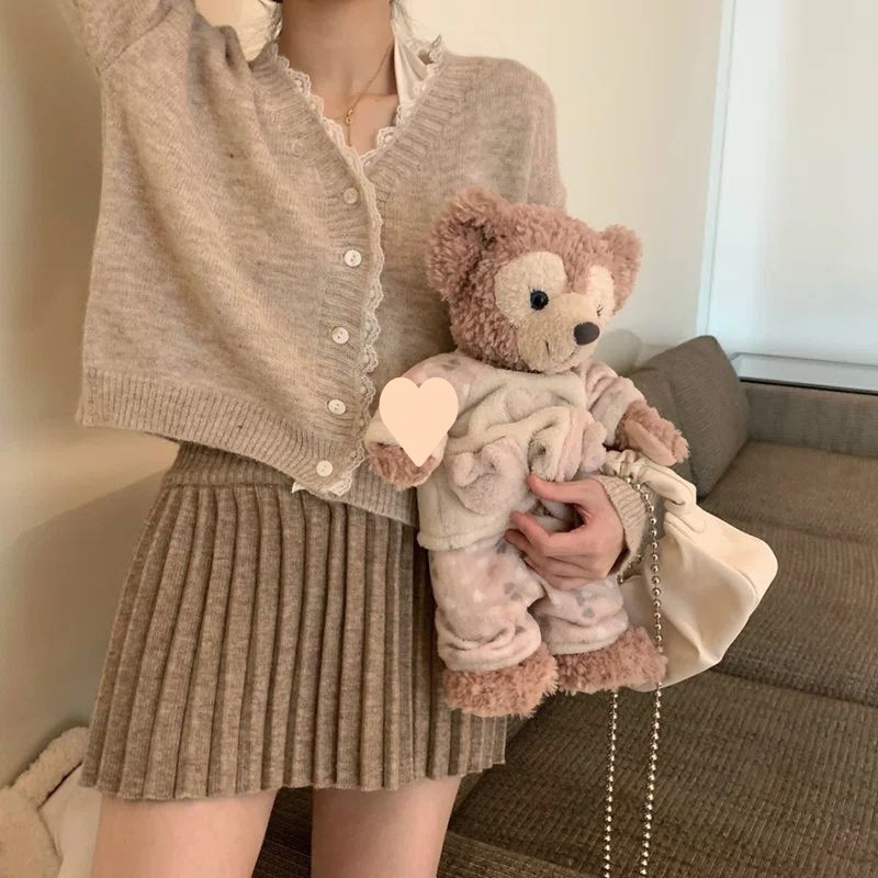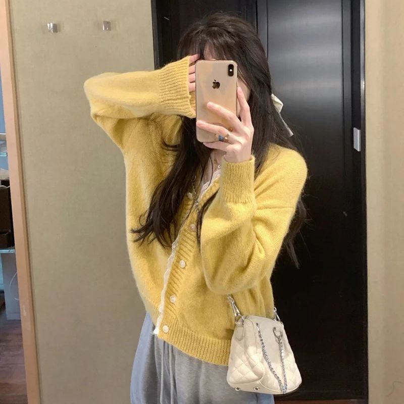 순수한 욕망 스타일 니트 카디건 여성의 가을과 겨울 2024 새로운 부드러운 스타일 레이스 스티칭 칼라 핑크 긴 소매 스웨터 스위트스토어 가기