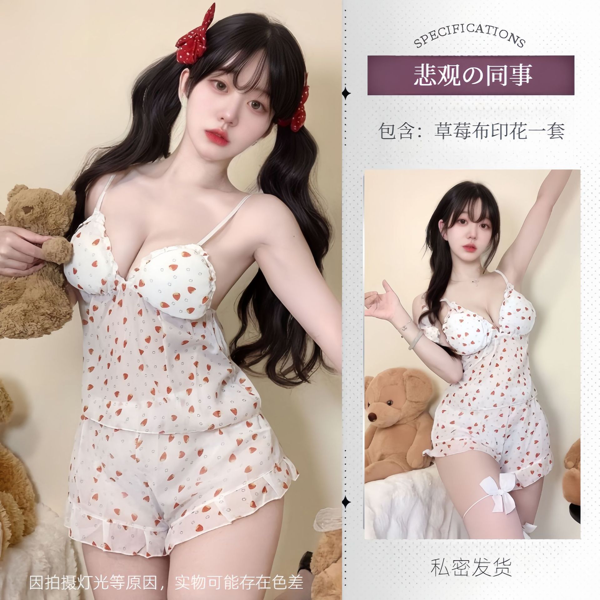 꽃 바다 순수한 욕망 딸기 시폰 V 넥 슬링 파자마 반바지 2 피스 스위트 홈 의류 세트 A868스토어 가기
