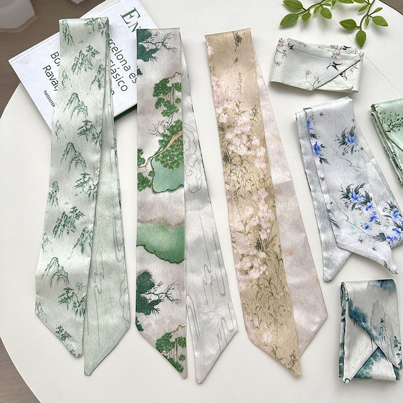2025년 신상 중국 스타일의 다용도 니치 고급 실크 스카프, 가방 리본, 벨트 장식, 작은 스카프 벨트 액세서리스토어 가기