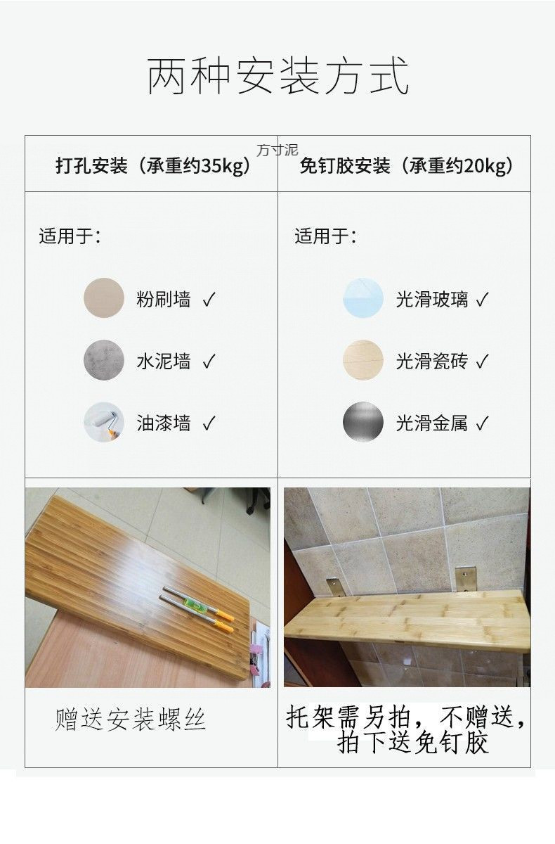 펀치 프리 스토리지 랙 솔리드 우드 플레이트 파티션 벽걸이 책장 주방 보관 대나무 선반 공급망