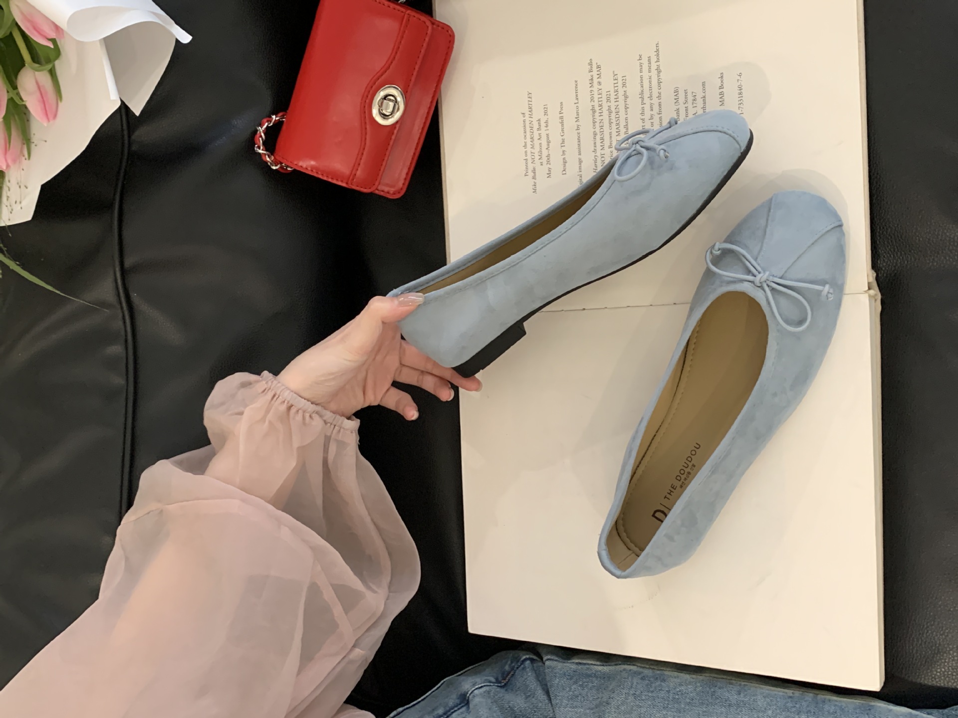프랑스 스타일 스커트 플랫 싱글 레이어 신발 여성 무당 신발 봄과 여름 2025 광장 발가락 활 얕은 입 부드러운 완두콩 이브닝 슈즈스토어 가기