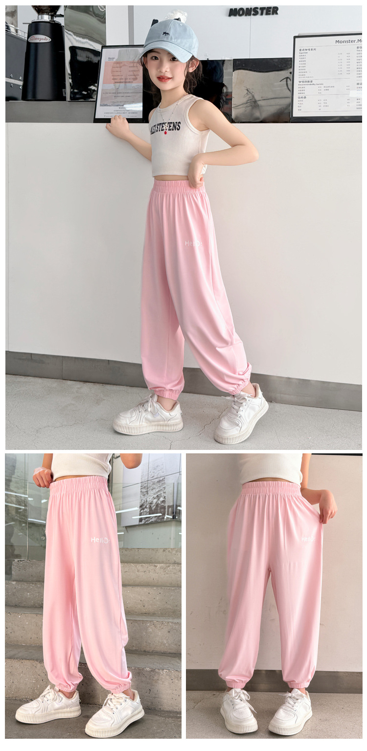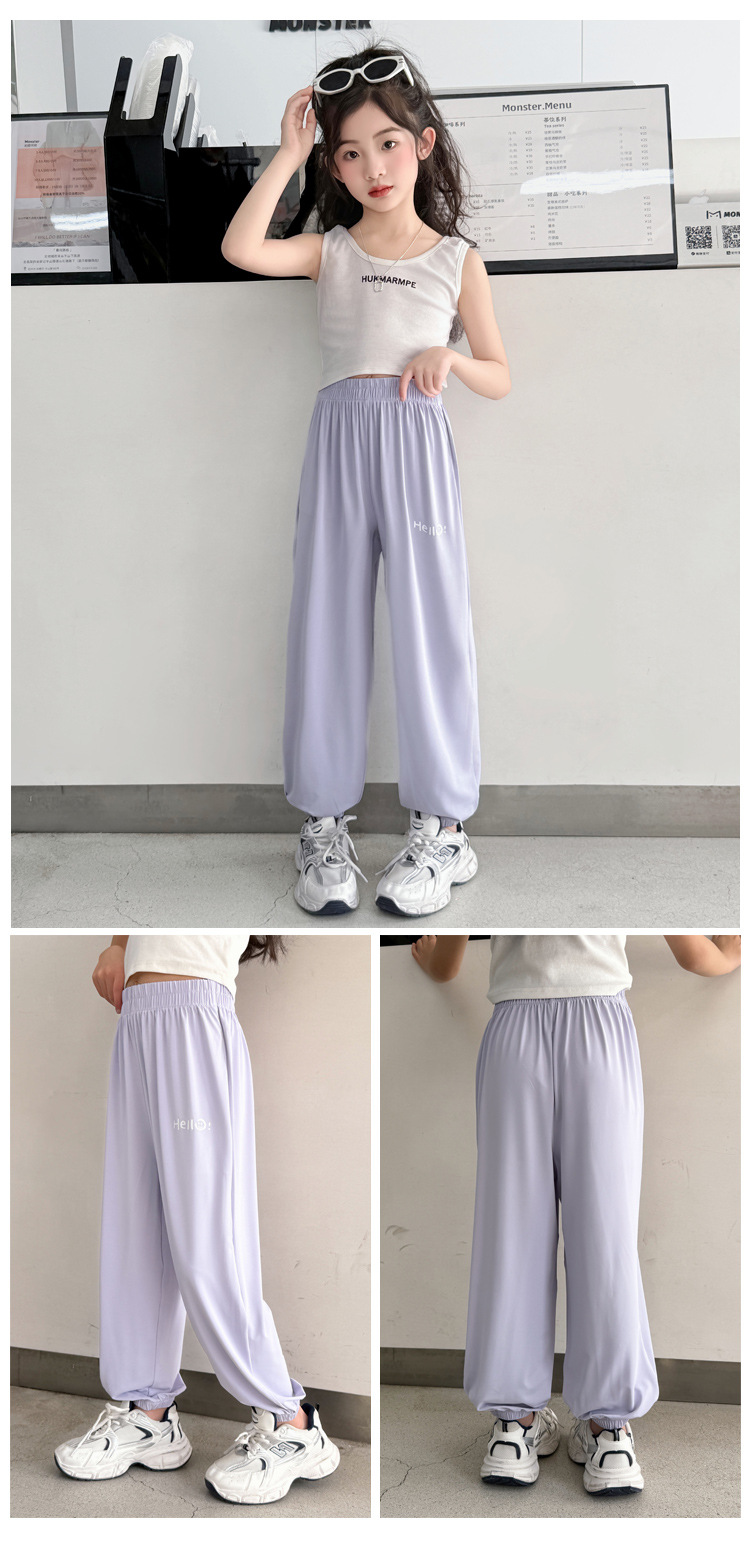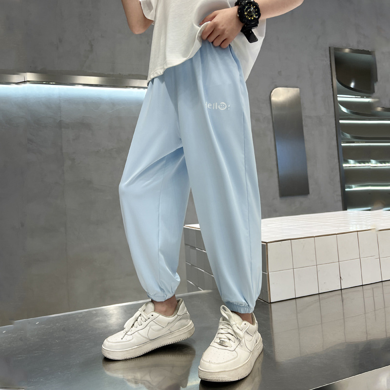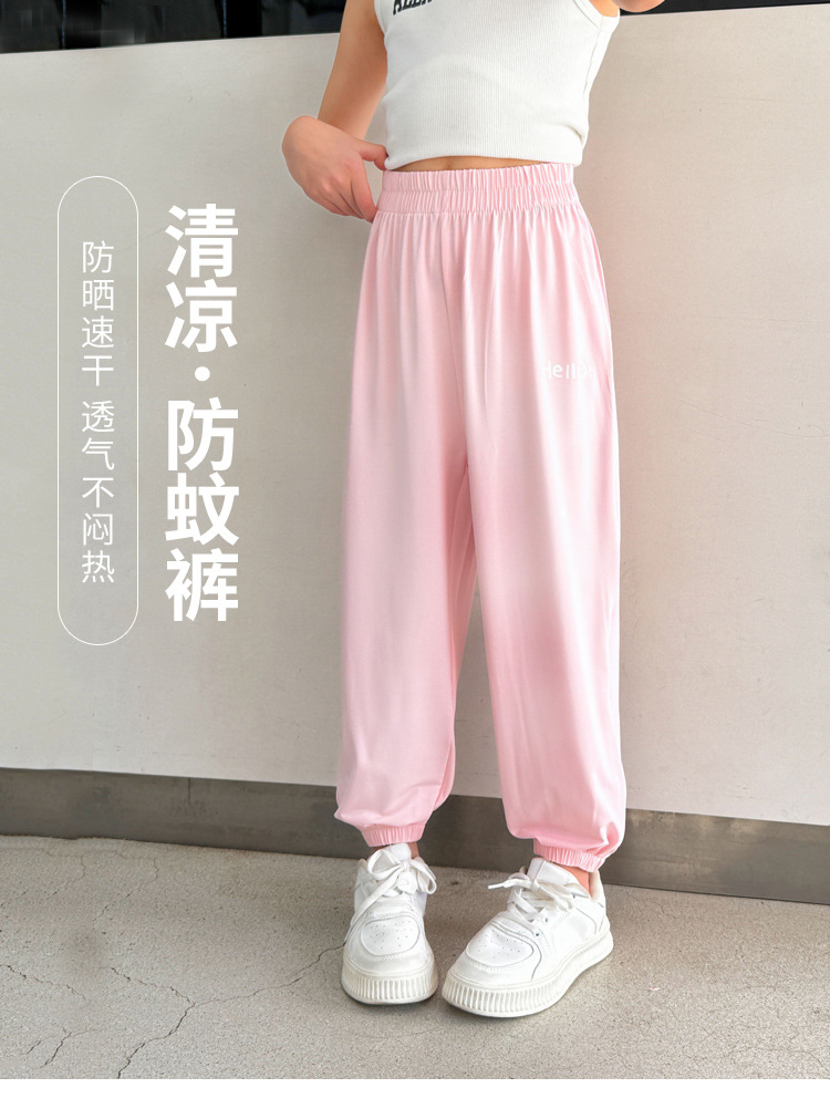 어린이 선스크린 바지 여름 얇은 통기성 캐주얼 안티 모기 바지 소년 소녀를위한 멋진 빠른 건조 바지 아이스 실크 에어컨 바지스토어 가기