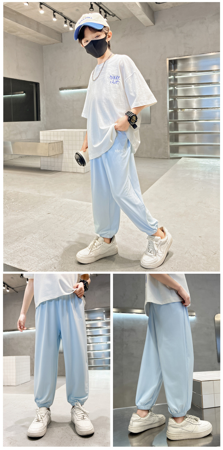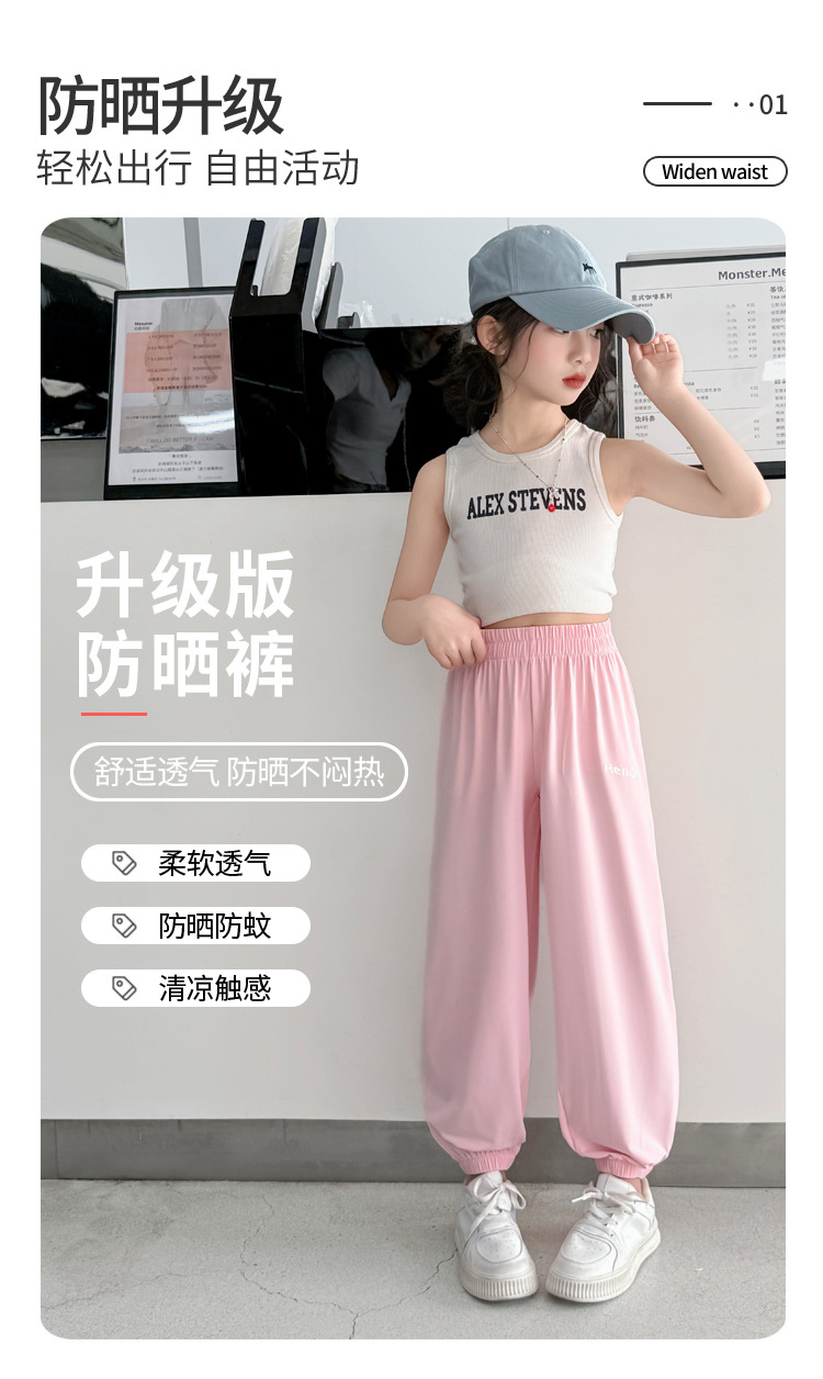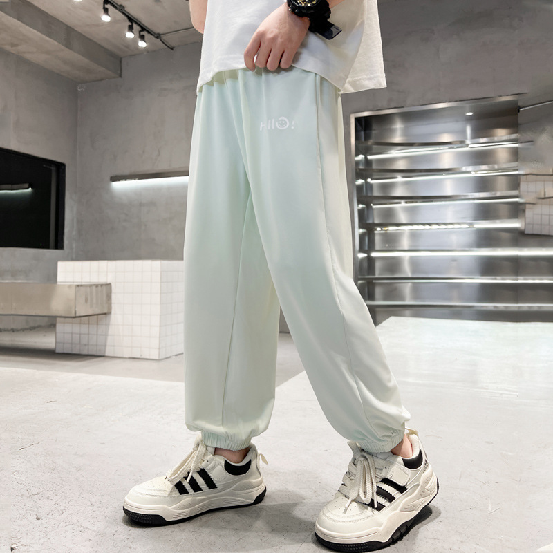 어린이 선스크린 바지 여름 얇은 통기성 캐주얼 안티 모기 바지 소년 소녀를위한 멋진 빠른 건조 바지 아이스 실크 에어컨 바지스토어 가기