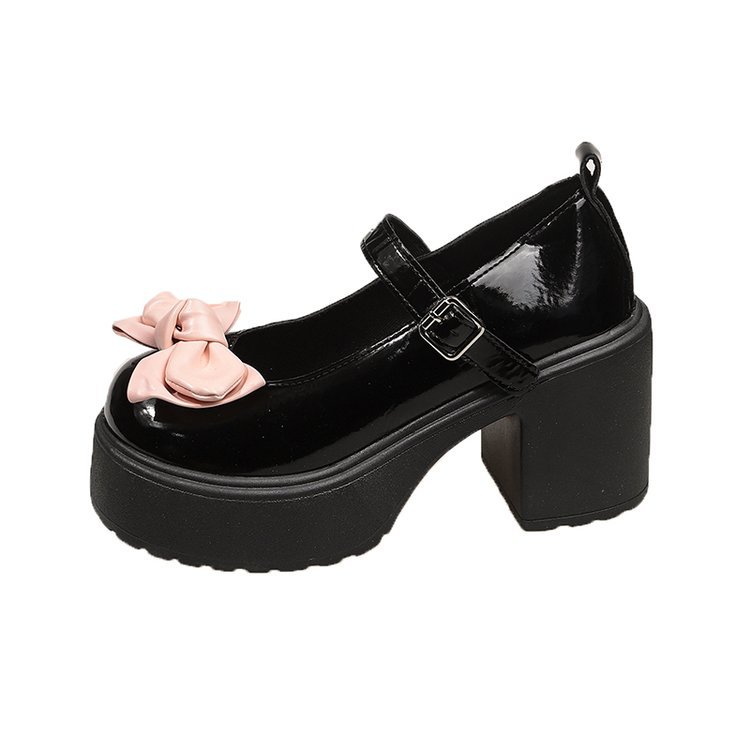 메리 제인 신발 여성의 2025 봄과 가을 새로운 둥근 발가락 신발 활 작은 가죽 신발 두꺼운 힐 플랫폼 하이힐