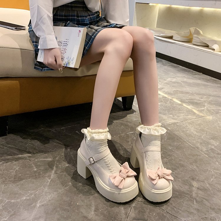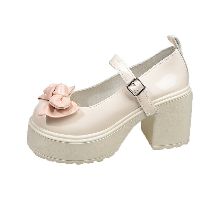 메리 제인 신발 여성의 2025 봄과 가을 새로운 둥근 발가락 신발 활 작은 가죽 신발 두꺼운 힐 플랫폼 하이힐스토어 가기