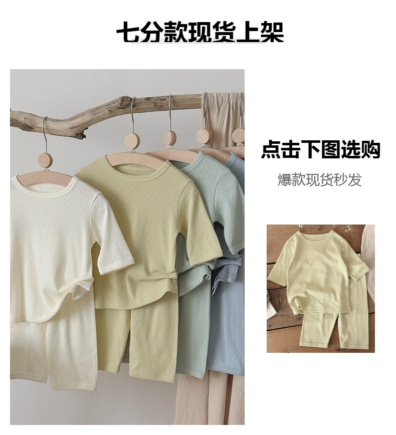 2025 여름 소년 소녀를위한 새로운 어린이 단색 호흡 잠옷 아기 면 클래스 A 한국 홈 의류 세트스토어 가기