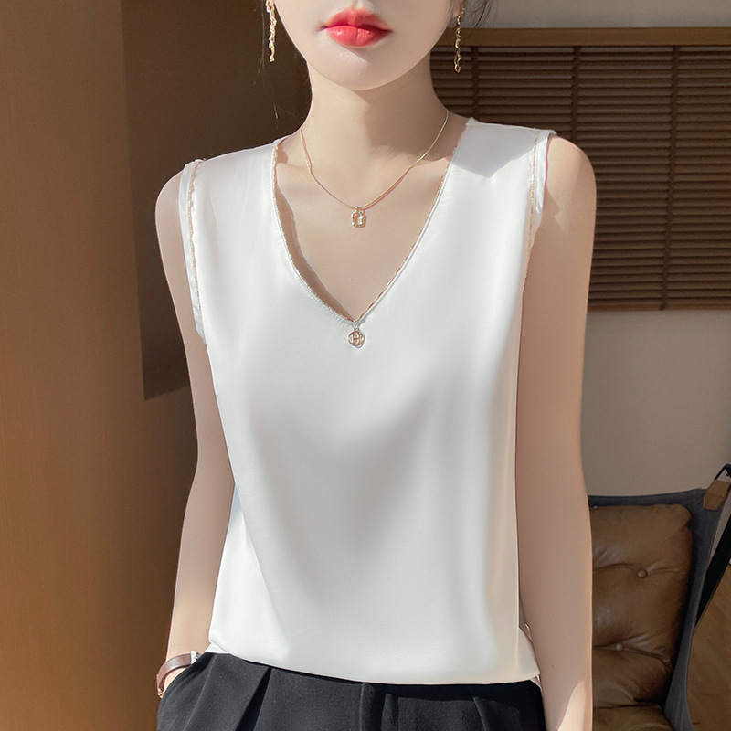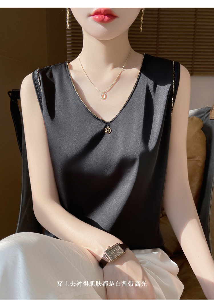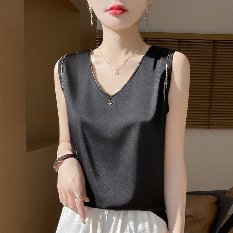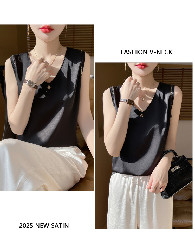 2025 년 여름 새로운 민소매 조끼 사틴베이스 스트랩 탑 공장 공급과 여성 V 넥 세트스토어 가기
