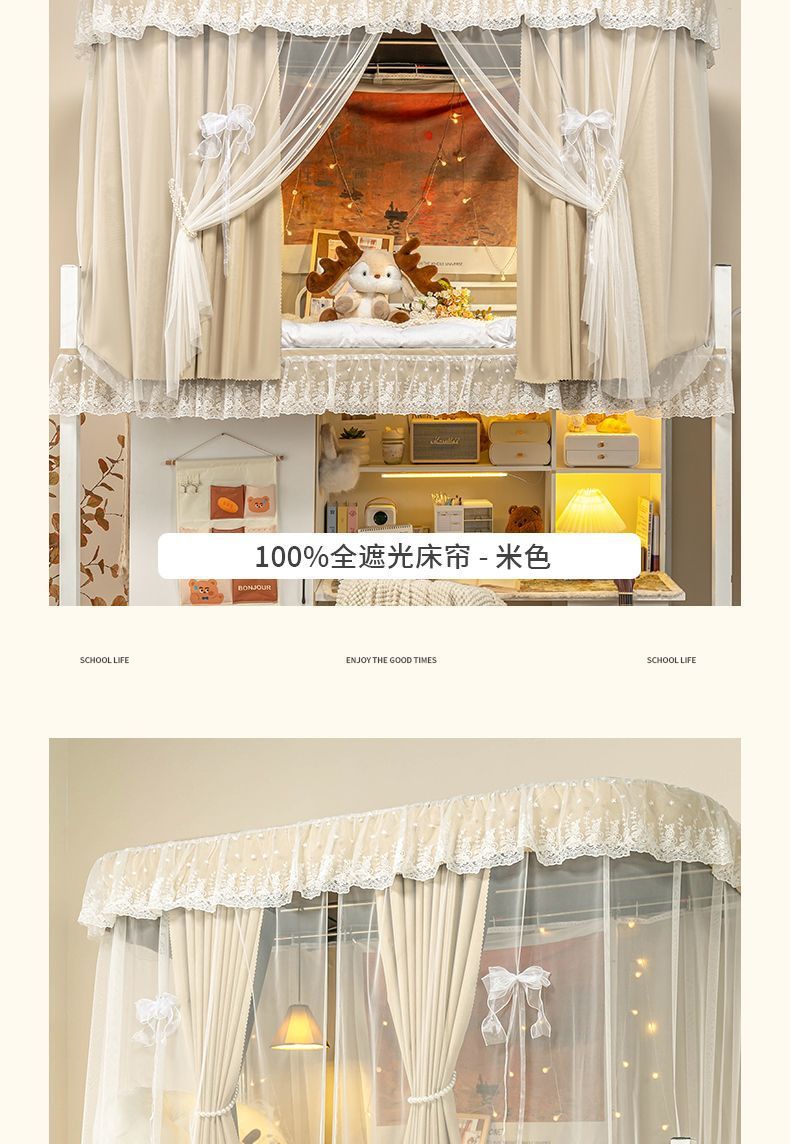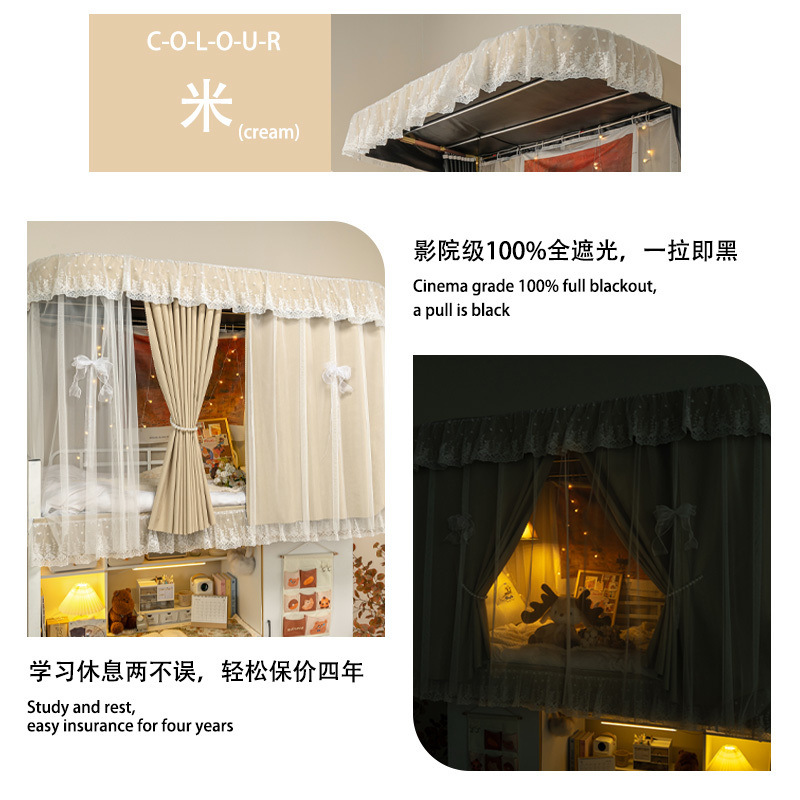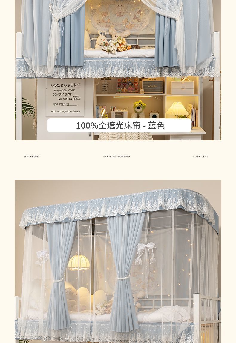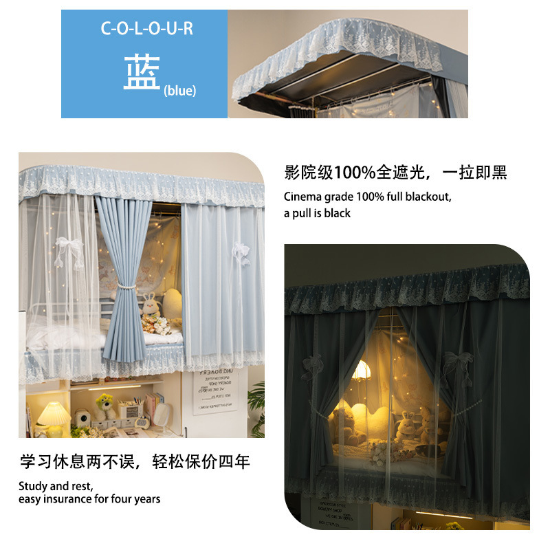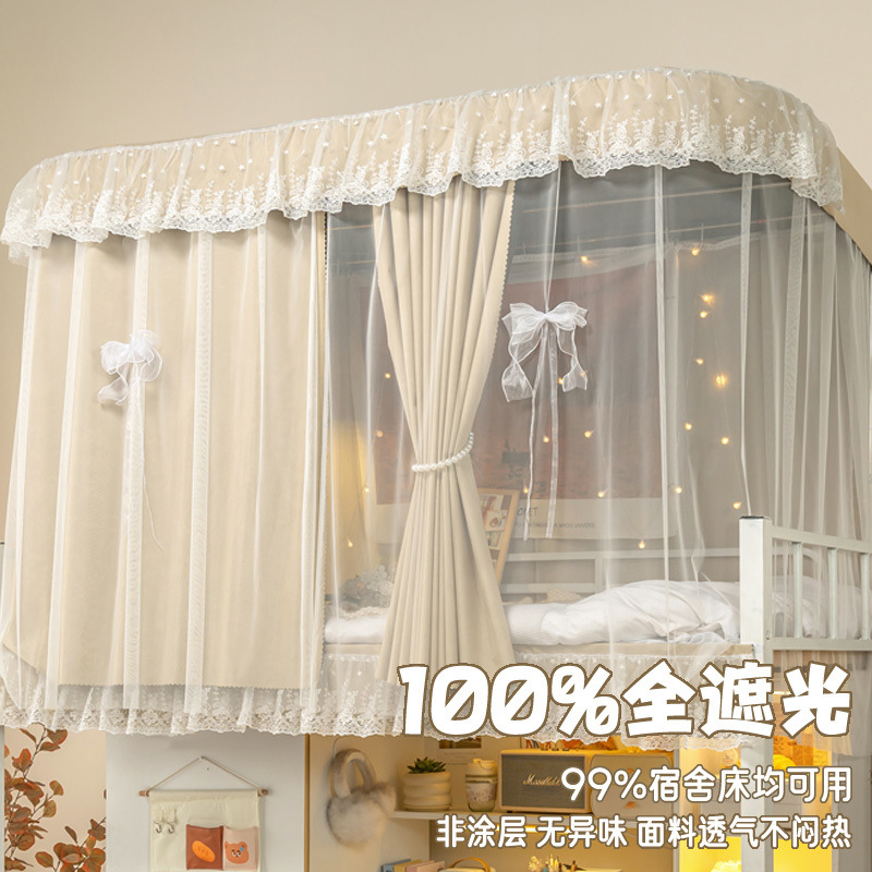 학생 기숙사 침실을위한 전체 음영 침대 커튼 상하 Burds 단단한 침대 커튼 비 천공 침대 인클로저 천 커튼 전체 덮힌 커튼