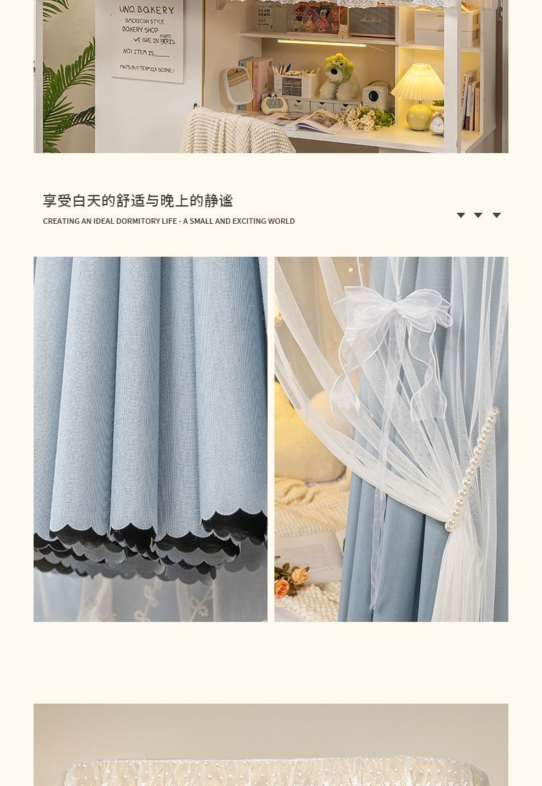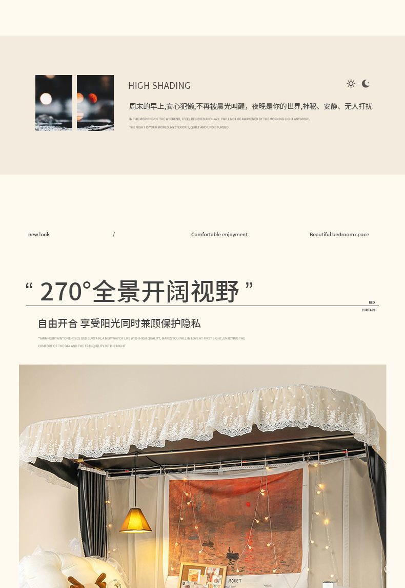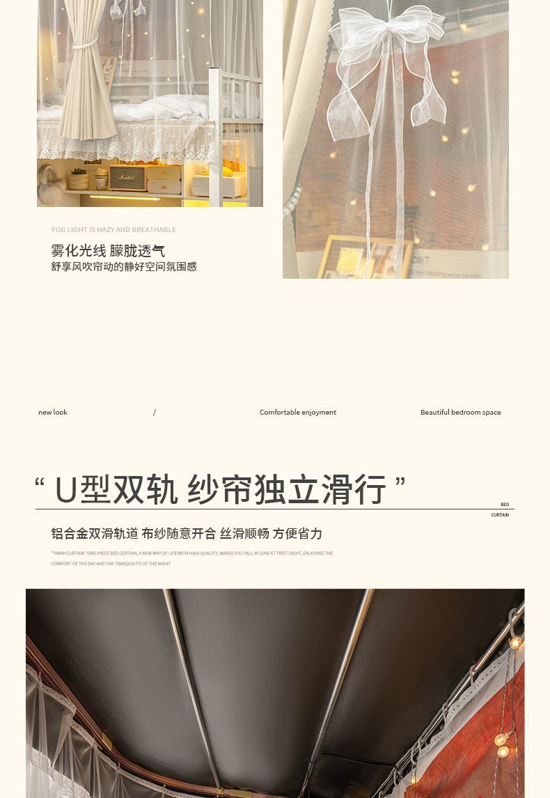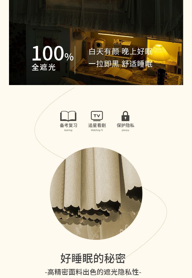 학생 기숙사 침실을위한 전체 음영 침대 커튼 상하 Burds 단단한 침대 커튼 비 천공 침대 인클로저 천 커튼 전체 덮힌 커튼