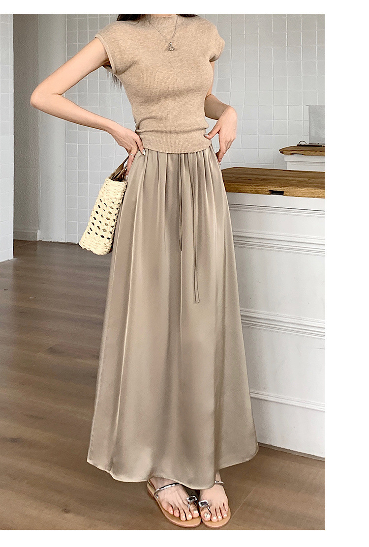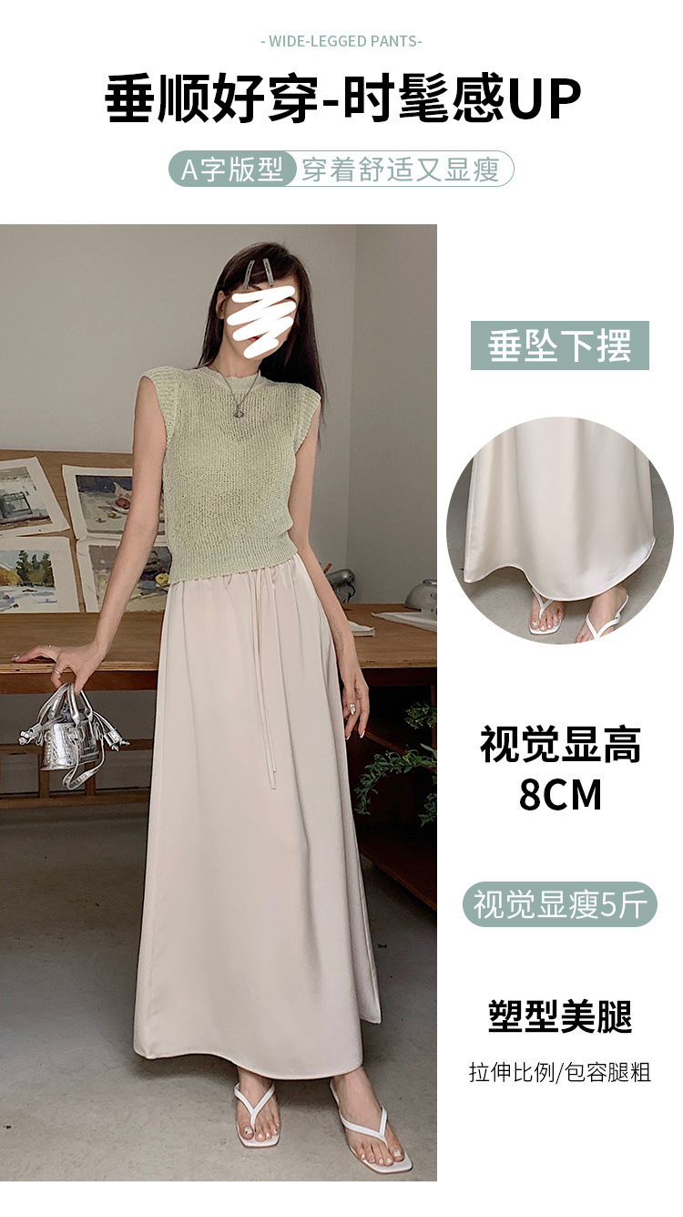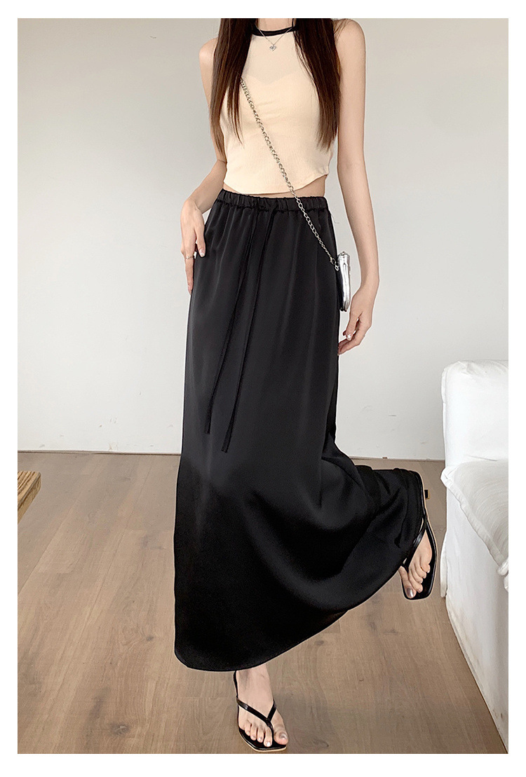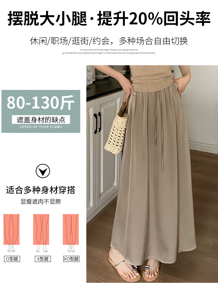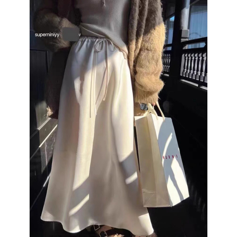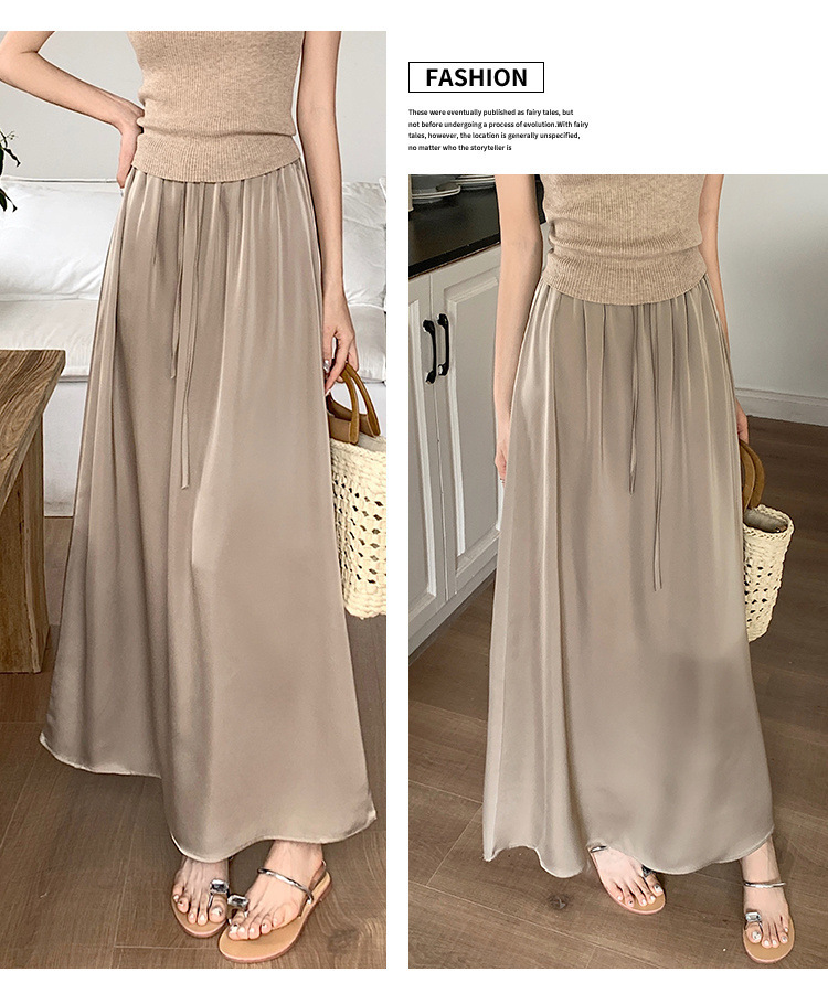 고급 Acetic Acid Satin 치마 여성 여름 중간 길이의 높은 허리 슬리밍 교수형 스타일 우아한 대형 치마