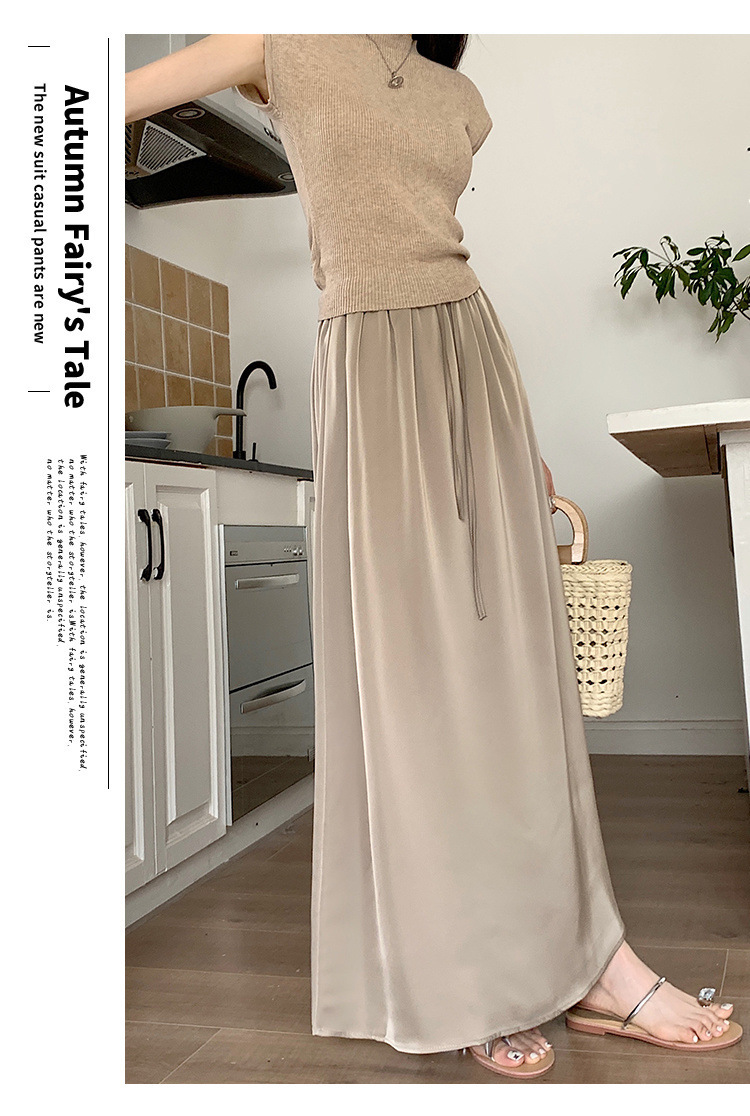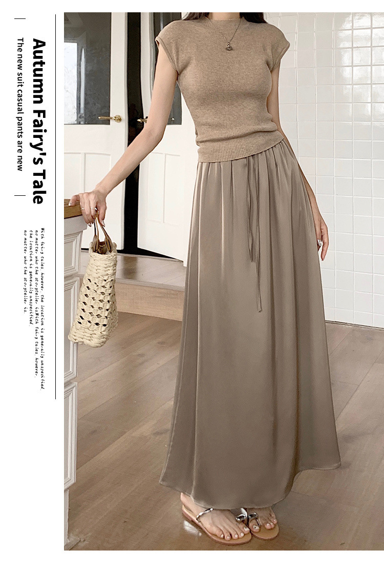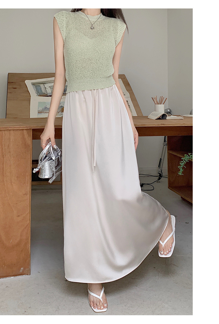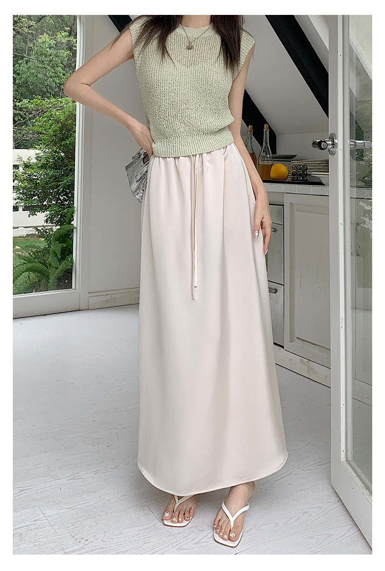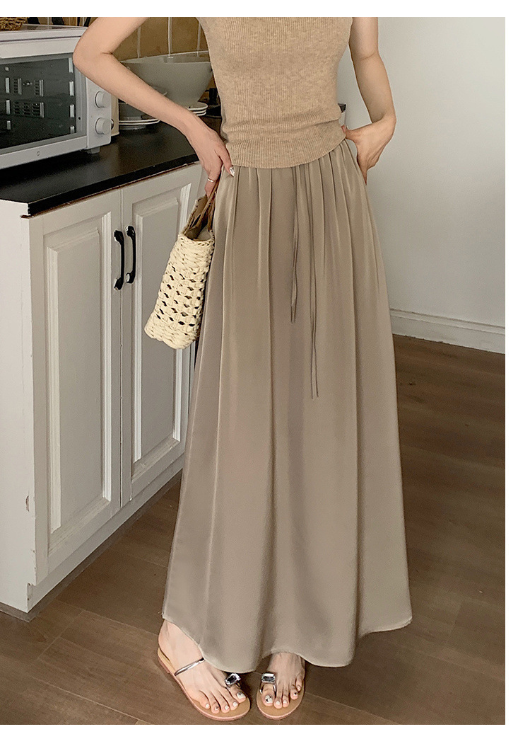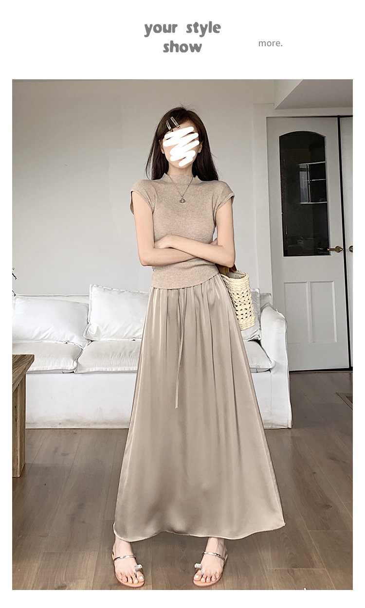 고급 Acetic Acid Satin 치마 여성 여름 중간 길이의 높은 허리 슬리밍 교수형 스타일 우아한 대형 치마