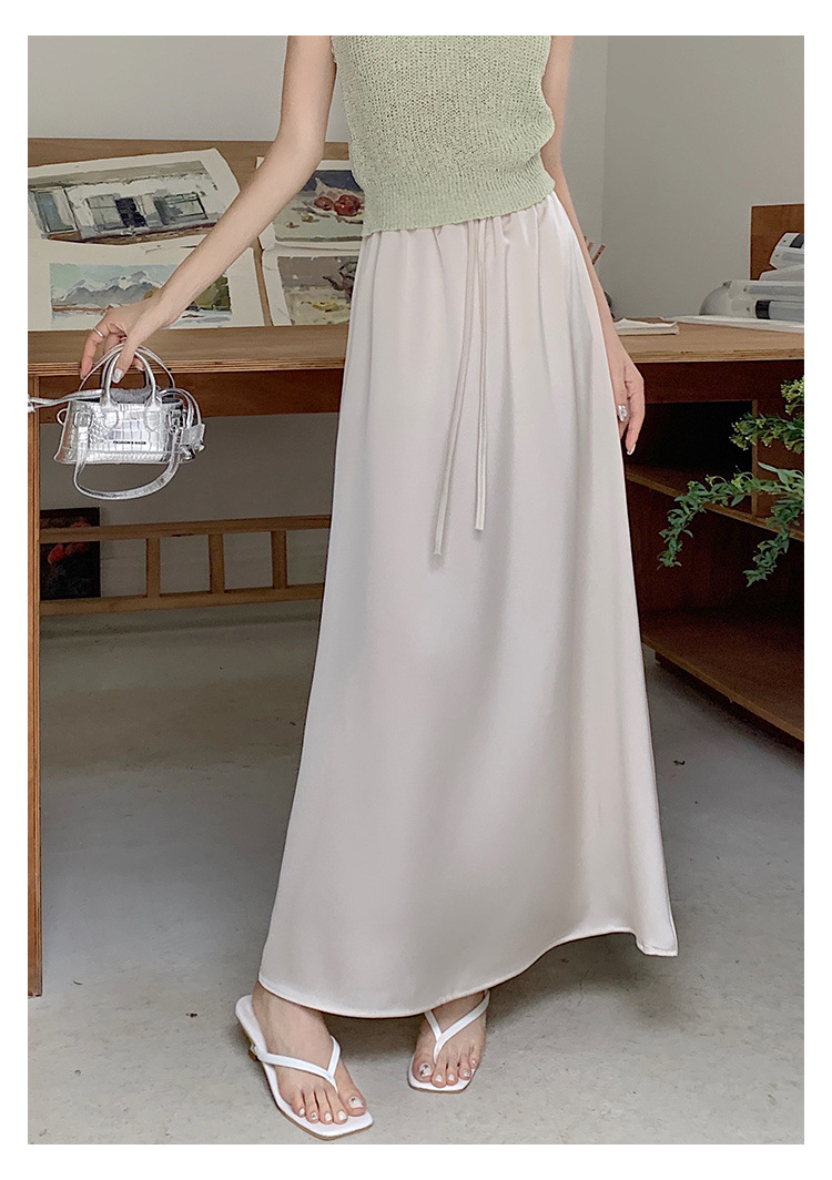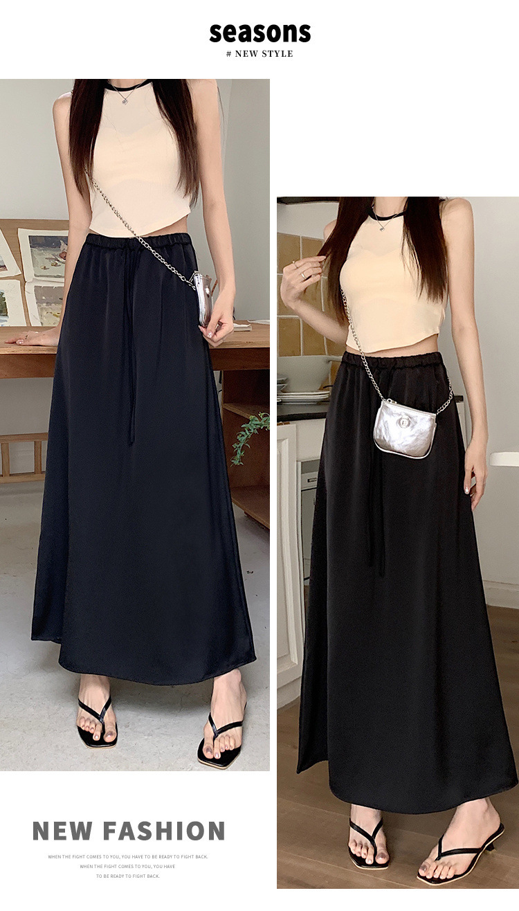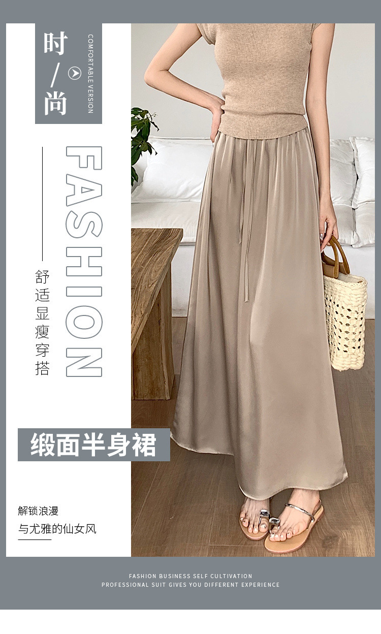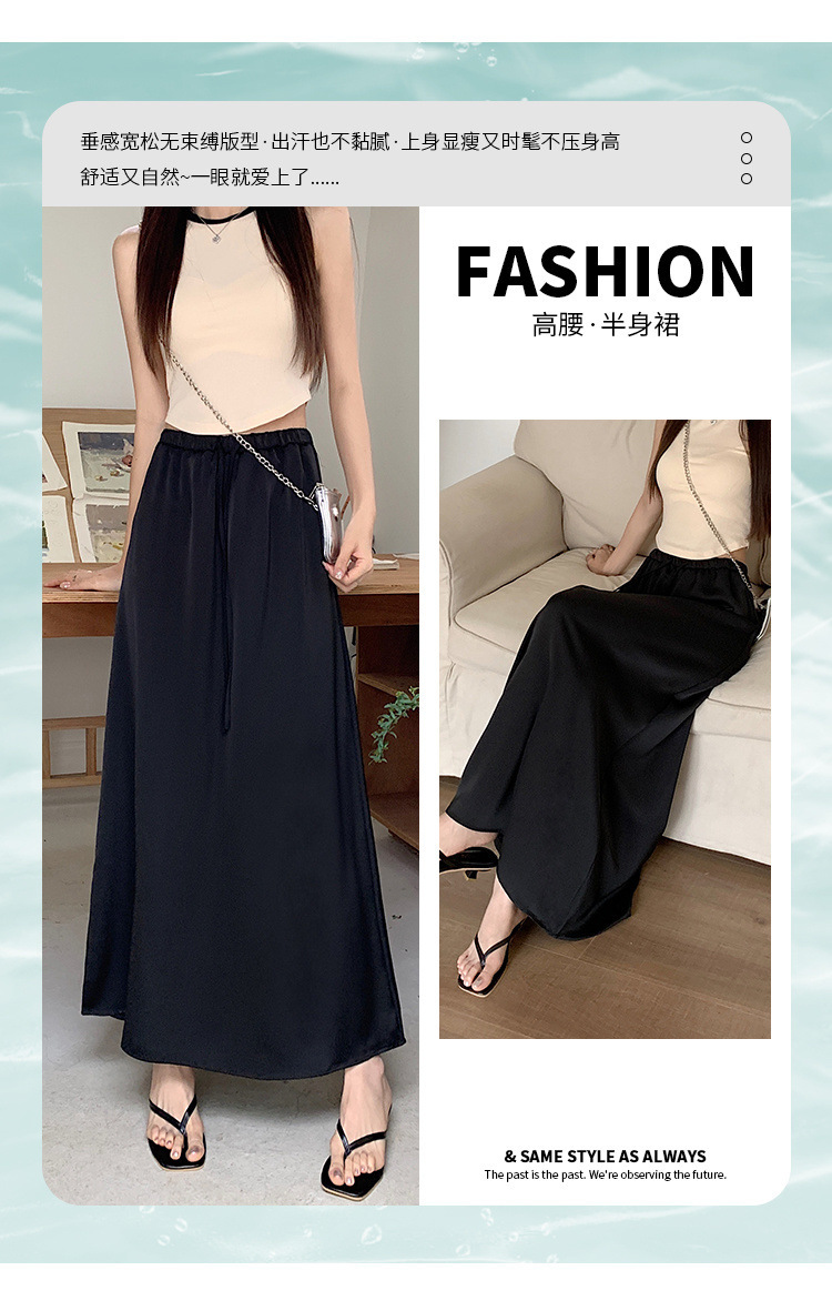 고급 Acetic Acid Satin 치마 여성 여름 중간 길이의 높은 허리 슬리밍 교수형 스타일 우아한 대형 치마스토어 가기